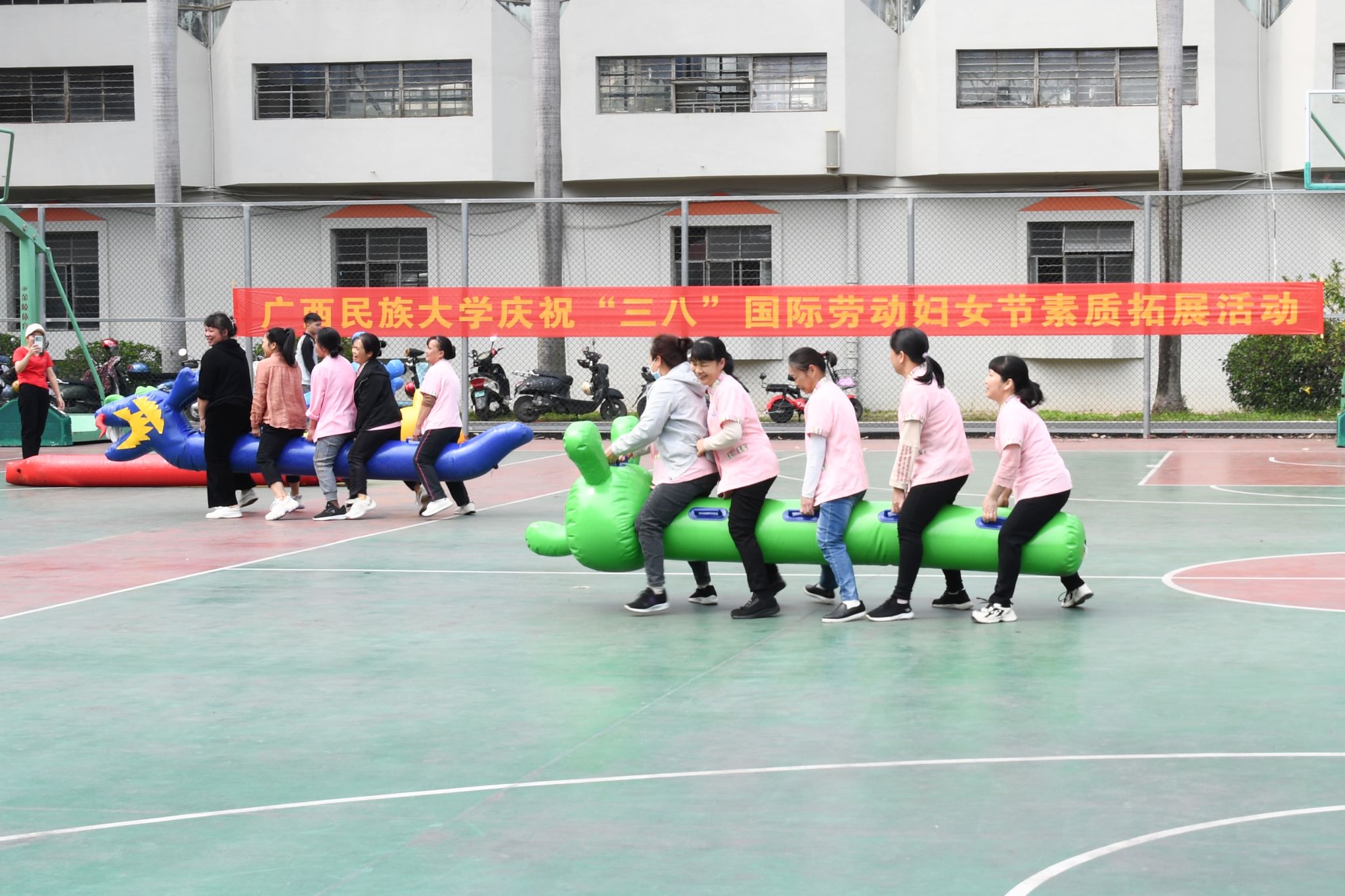 【大學生通訊社報道】3月7日下午,廣西民族大學在相思湖校區大豐籃球場開展“三八”國際勞動婦女節素質拓展活動。校黨委副書記陳銘彬出席活動,并向全體女教職工致以節日問候。