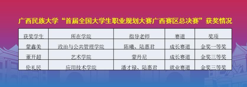 廣西民族大學“首屆全國大學生職業規劃大賽廣西賽區總決賽”獲獎情況