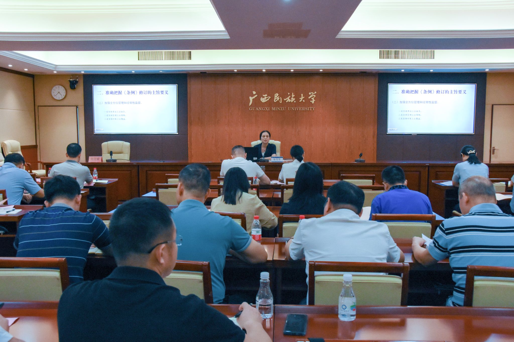 【學校召開紀檢干部集中理論學習暨警示教育大會】4月24日,自治區紀委監委駐校紀檢監察組組長、校黨委副書記、紀委書記韋雪芳在學校紀檢干部集中理論學習暨警示教育大會上要求,全校紀檢監察干部要深刻認識《中國共產黨紀律處分條例》頒布的時代背景,增強學習的主動性和自覺性,爭做遵規守紀的表率;要進一步推進黨紀學習教育,強化紀律建設,確保嚴格執紀、精準執紀。(初審/韋惠文 復審/榮子卿 終審/王文娟)