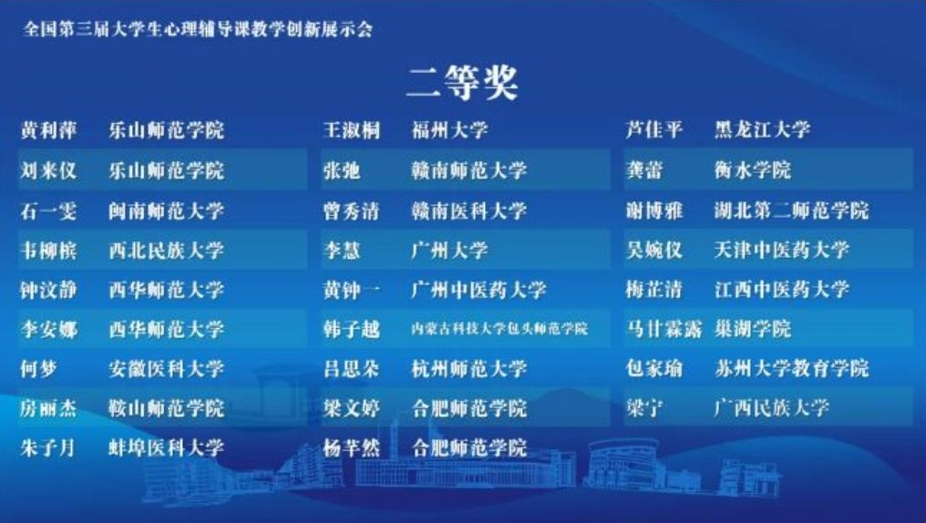 全國第三屆大學生心理輔導課教學創新展示會獲獎名單