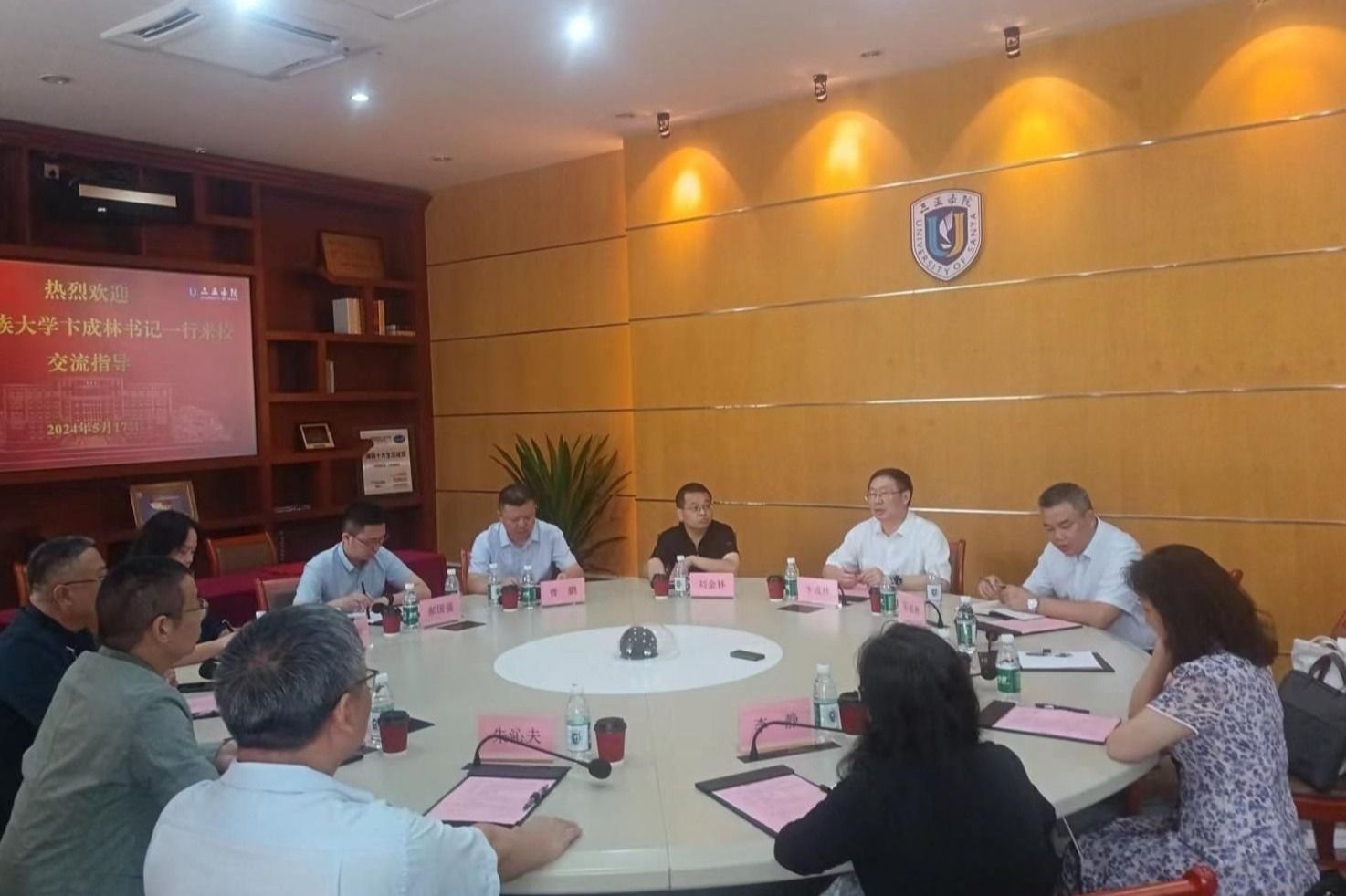 5月17日,廣西民族大學黨委書記、廣西中華民族共同體意識研究院院長卞成林帶隊到三亞學院洽談合作事宜。廣西民族大學黨委副書記陳銘彬,三亞學院理事長、名譽校長、吉利人才發展集團CEO陸丹,三亞學院校長沈建勇,副校長朱沁夫參加座談會。