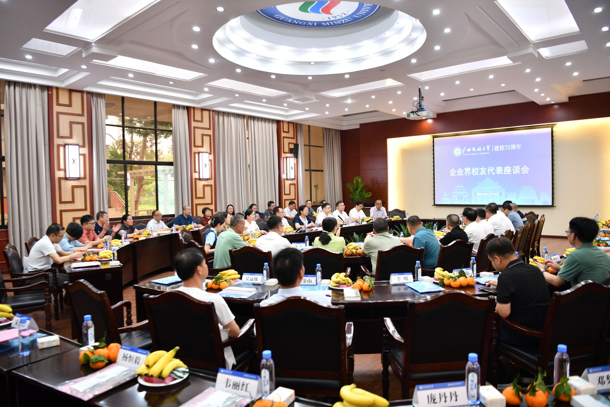 【大學生通訊社報道】5月18日上午,廣西民族大學召開企業界校友代表座談會,校長韋仕珍,副校長高興宇及各學院有關負責人出席座談會。