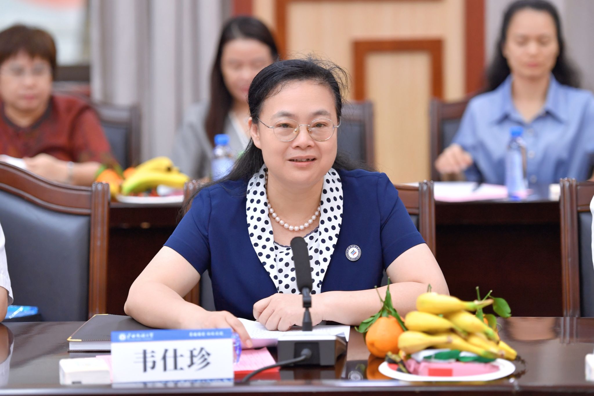 韋仕珍對校友返回母校表示歡迎和感謝,并向校友們介紹學校基本情況。一是迎接評估工作,目前學校正在迎接教育部本科教育教學評估,全體師生以飽滿的工作熱情,積極參與本科教育教學評估的各項工作中,建校72周年來,以文化研習基地為教育教學平臺的對外窗口,進行史料核對工作;二是學校辦學規模不斷擴大,學校現有相思湖、思源湖、武鳴三個校區,占地面積約3600畝,師資隊伍力量不斷增強,學生數量不斷增加;三是學科建設情況,學校辦學基礎夯實,學科門類較為齊全,今后仍需加強對研究生、博士生的教育培養,不斷提升教學質量水平,培養更多高層次人才;四是學校辦學方向,學校堅持社會主義辦學方向,落實立德樹人根本任務,建設適應時代需要、特色鮮明的高水平現代化綜合大學;五是人才培養現狀,廣大校友分布各地,能以實際行動反哺母校,為學校科研、基礎設施建設等方面提供智力、財力、物力支持。她希望,各位校友能與學校繼續保持緊密聯系,充分發揮優勢,支持母校招生就業工作,共同推動學校的持續發展和校友事業的繁榮進步。