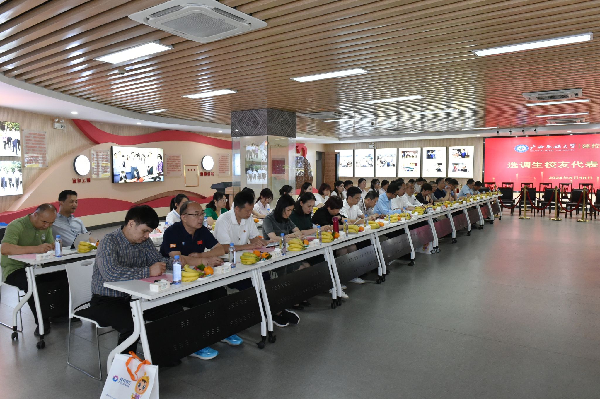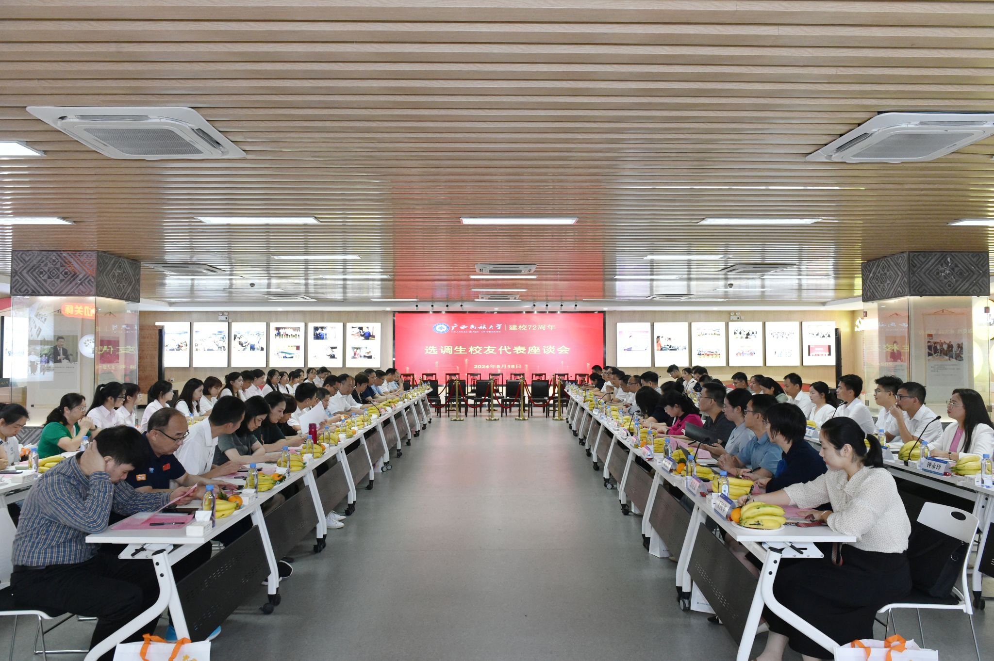 【大學生通訊社報道】5月18日上午,廣西民族大學選調生校友代表座談會在新時代“我與祖國共成長”黨團主題活動文明實踐所召開。副校長何立榮、姜明國,共青團廣西區委二級巡視員、組織部部長劉宇紅等校友代表出席會議,有關學院和部門負責人及在校生代表參加會議。會議由姜明國主持。