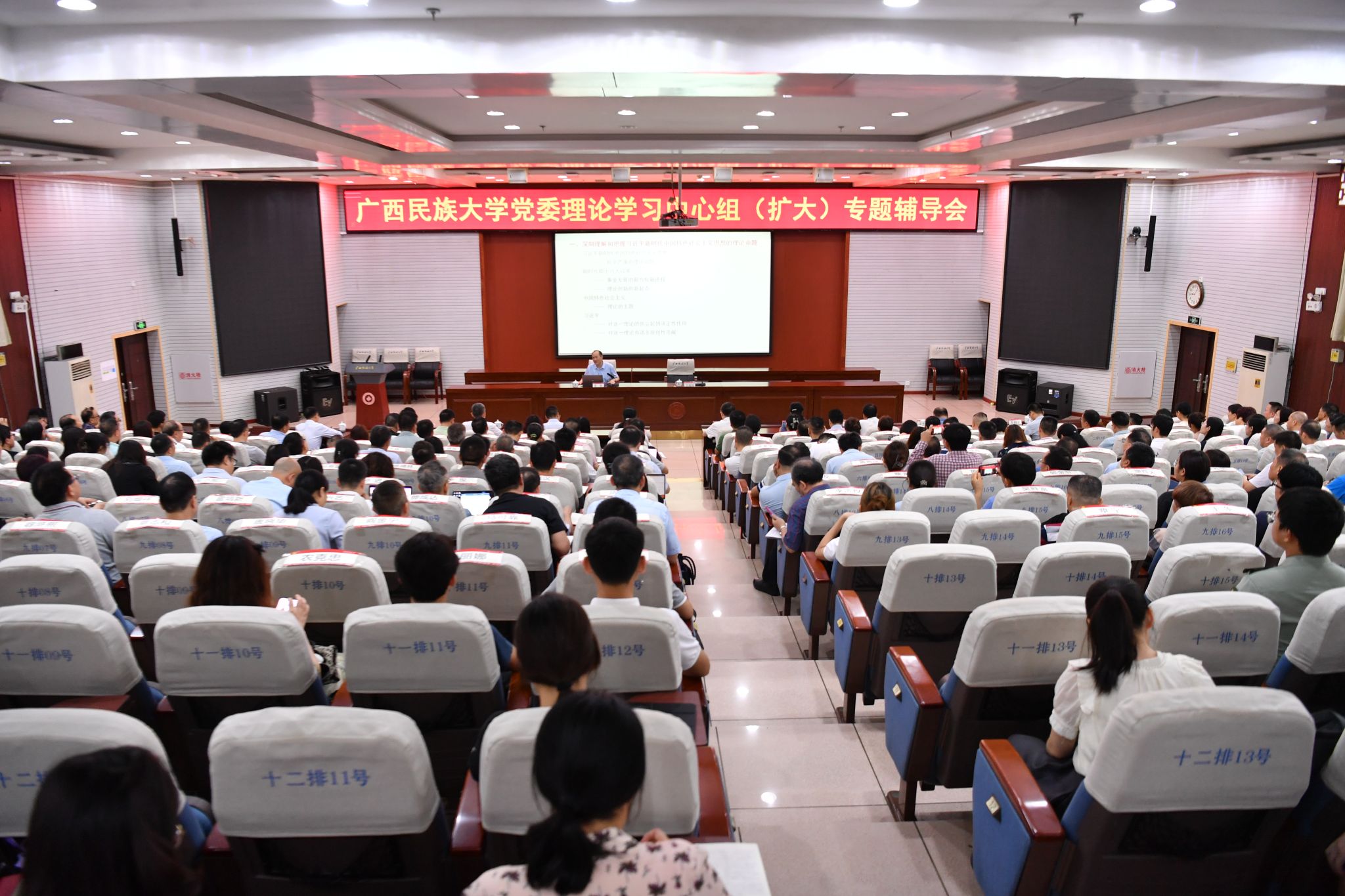 6月7日上午,廣西民族大學黨委理論學習中心組(擴大)專題輔導會在科技樓報告廳召開,中央黨校(國家行政學院)秦剛教授作學習習近平新時代中國特色社會主義思想專題輔導。學校黨委書記卞成林主持會議。校黨委副書記、校長韋仕珍等在家校領導,黨委委員、全體中層領導干部、馬克思主義學院全體教師及輔導員和學生代表參加學習會。
