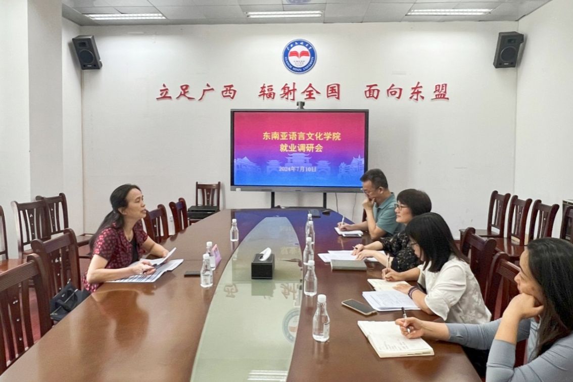 【校領導到東南亞語言文化學院調研2024屆畢業生工作】7月10日,校黨委副書記、紀委書記韋雪芳到東南亞語言文化學院調研2024屆畢業生工作時強調,要高度重視畢業生就業工作,重點做好困難學生就業幫扶工作和畢業生就業觀念教育引導,及時更新就業信息,不斷拓展新工作崗位,為學生提供高質量就業的機會。(初審/羅玉蓮 復審/榮子卿 終審/王文娟)