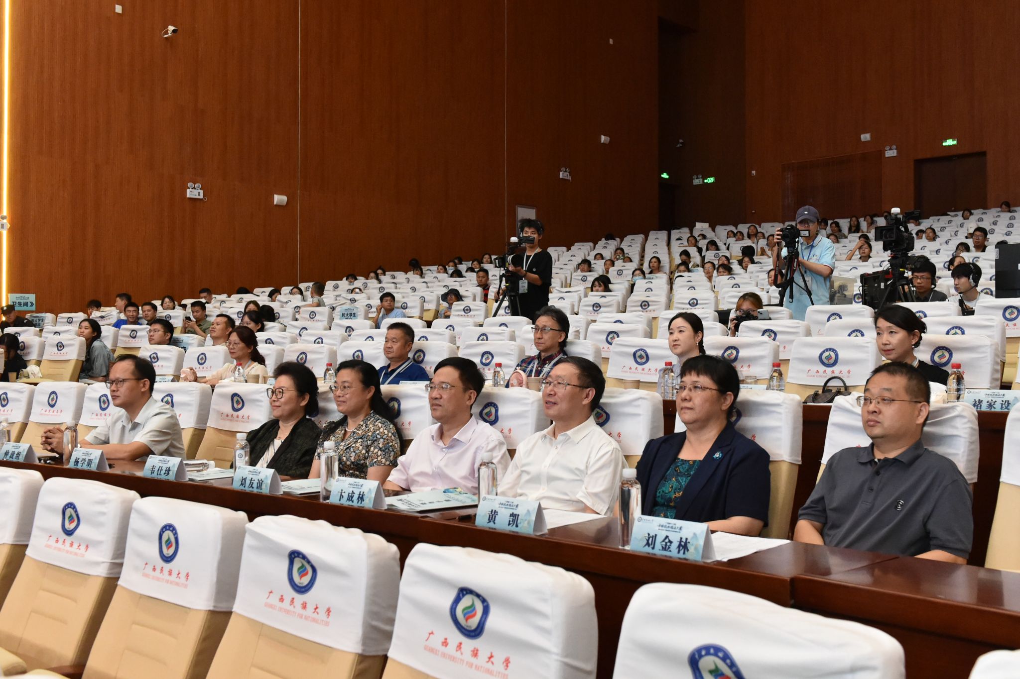 自治區(qū)黨委教育工委副書記、自治區(qū)教育廳黨組書記、廳長劉友誼,自治區(qū)教育廳二級巡視員趙成光,廣西民族大學黨委書記卞成林,校長韋仕珍,副校長姜明國,全國中華經(jīng)典誦讀大賽項目負責人馬惠玲等領導和嘉賓出席本次活動。來自14個設區(qū)市和部分高校共1200多名師生、家長、各界群眾到場觀摩。