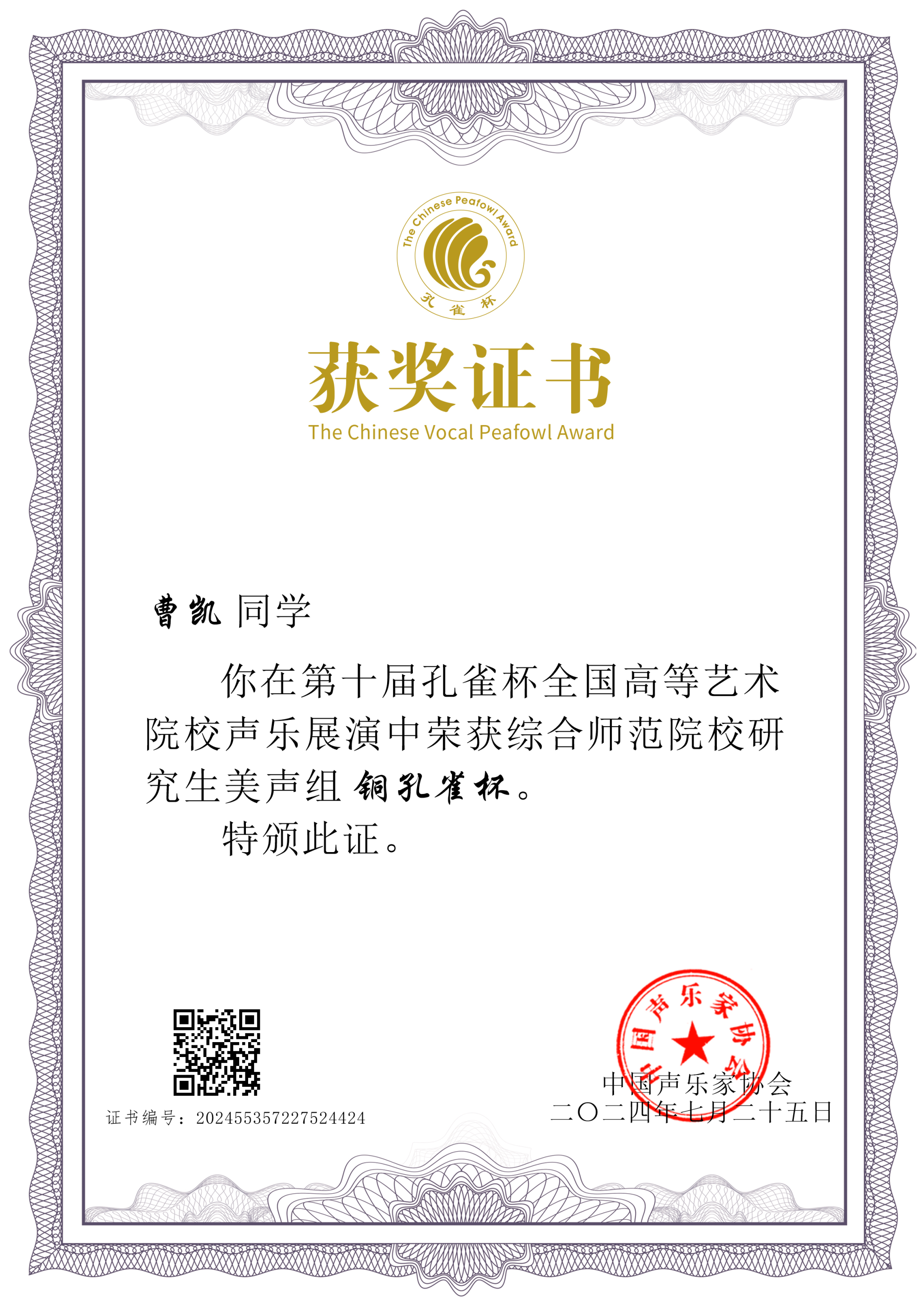 曹凱演唱曲目《不答應也得答應》獲銅孔雀杯