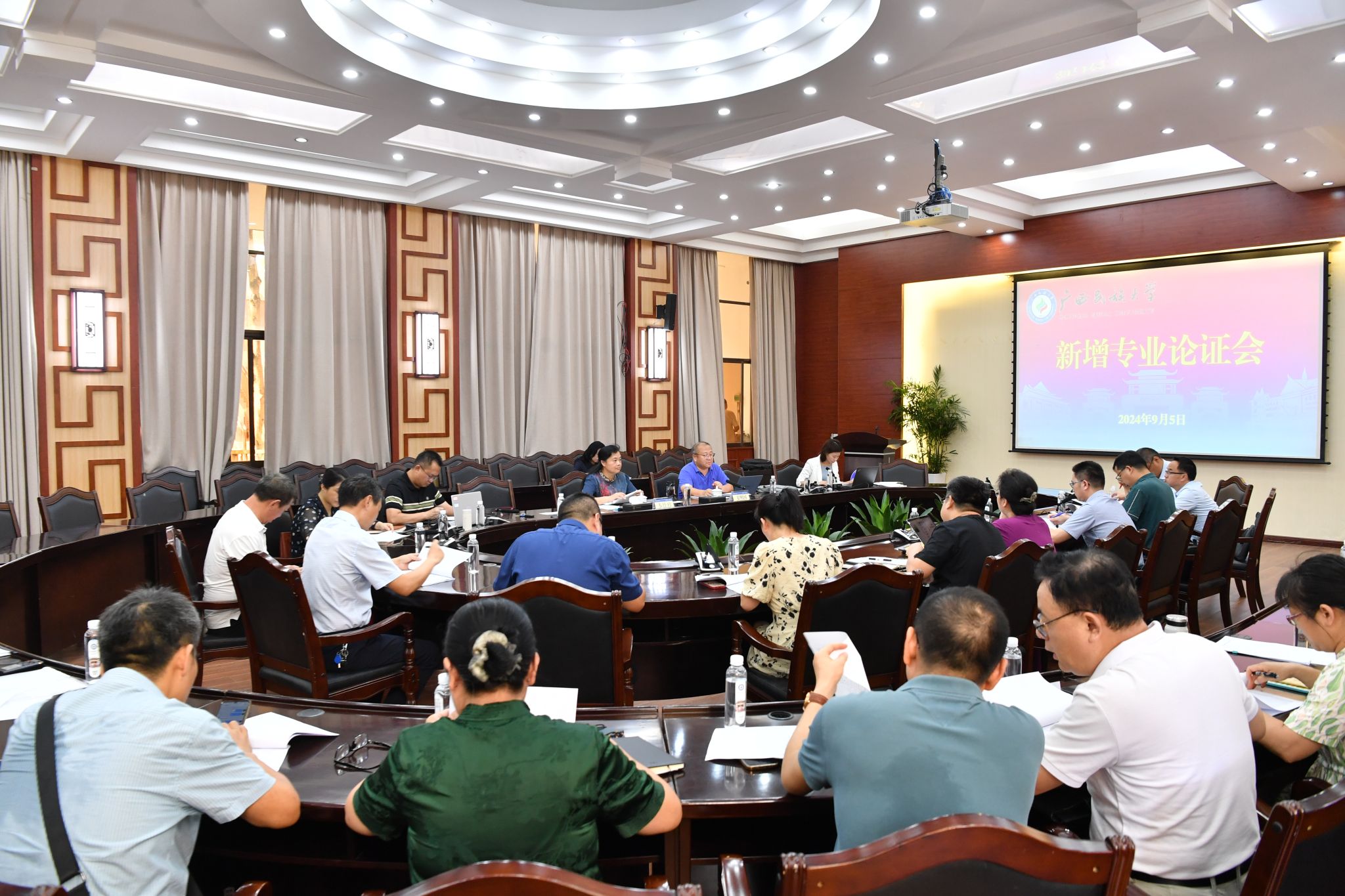 【大學生通訊社報道】9月5日下午,廣西民族大學召開擬新增專業論證會,校長韋仕珍出席,副校長姜明國主持會議。