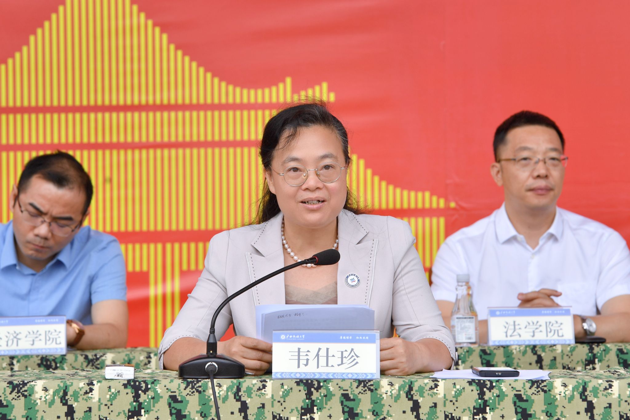 韋仕珍對此次軍訓(xùn)成果表示肯定,代表學(xué)校向順利完成訓(xùn)練任務(wù)的教官、教職員工表示感謝。她表示,大學(xué)生開展軍訓(xùn)是全面貫徹黨的教育方針,提高國防教育質(zhì)量的重要途徑。韋仕珍希望同學(xué)們繼續(xù)自覺保持和發(fā)揚(yáng)軍訓(xùn)所養(yǎng)成的優(yōu)良作風(fēng)與優(yōu)秀傳統(tǒng),一是將拼搏精神內(nèi)化為自身的優(yōu)秀品質(zhì),保持堅(jiān)韌毅力,勇往直前,追求卓越;二是要將團(tuán)隊(duì)合作精神融入日常學(xué)習(xí)生活,為實(shí)現(xiàn)目標(biāo)努力奮斗;三是練就過硬本領(lǐng),堅(jiān)守求知為學(xué)的本心,勇?lián)鷷r(shí)代重任。