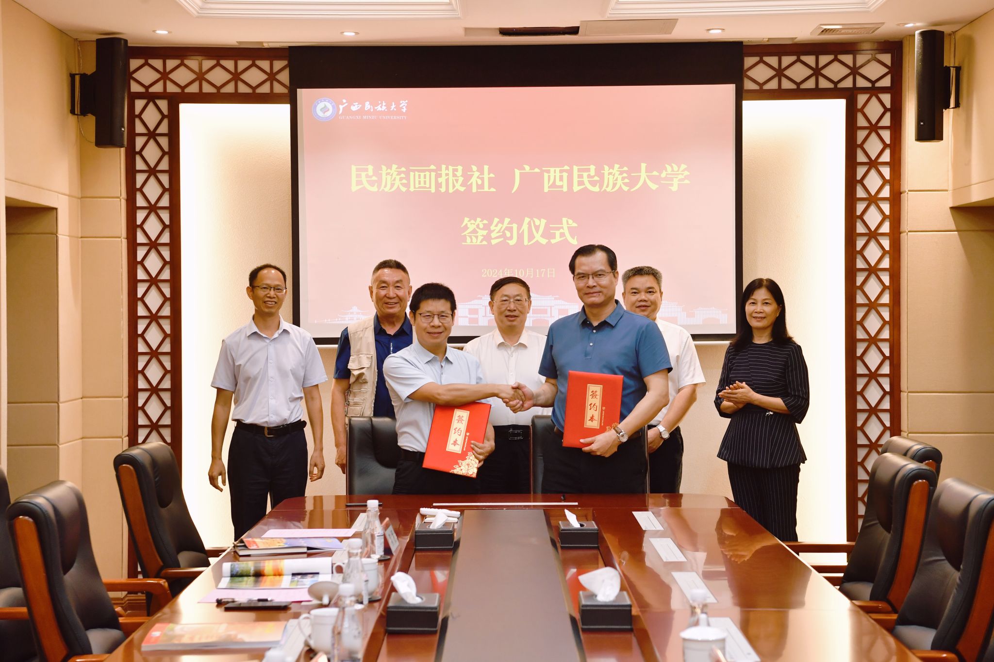 10月17日下午,廣西民族大學與民族畫報社舉行簽約儀式。學校黨委書記卞成林,民族畫報社黨委副書記、紀委書記張繼康,校黨委副書記陳銘彬、鄧國彬等出席儀式。