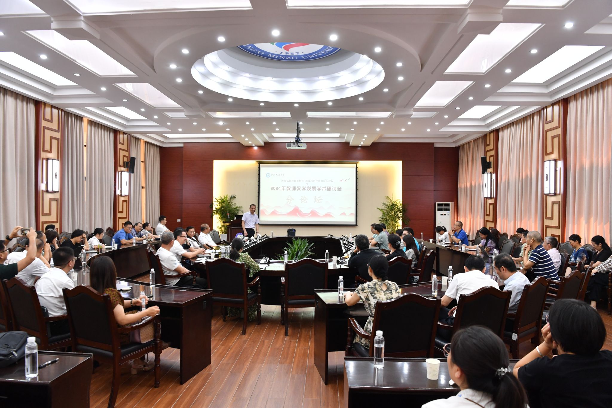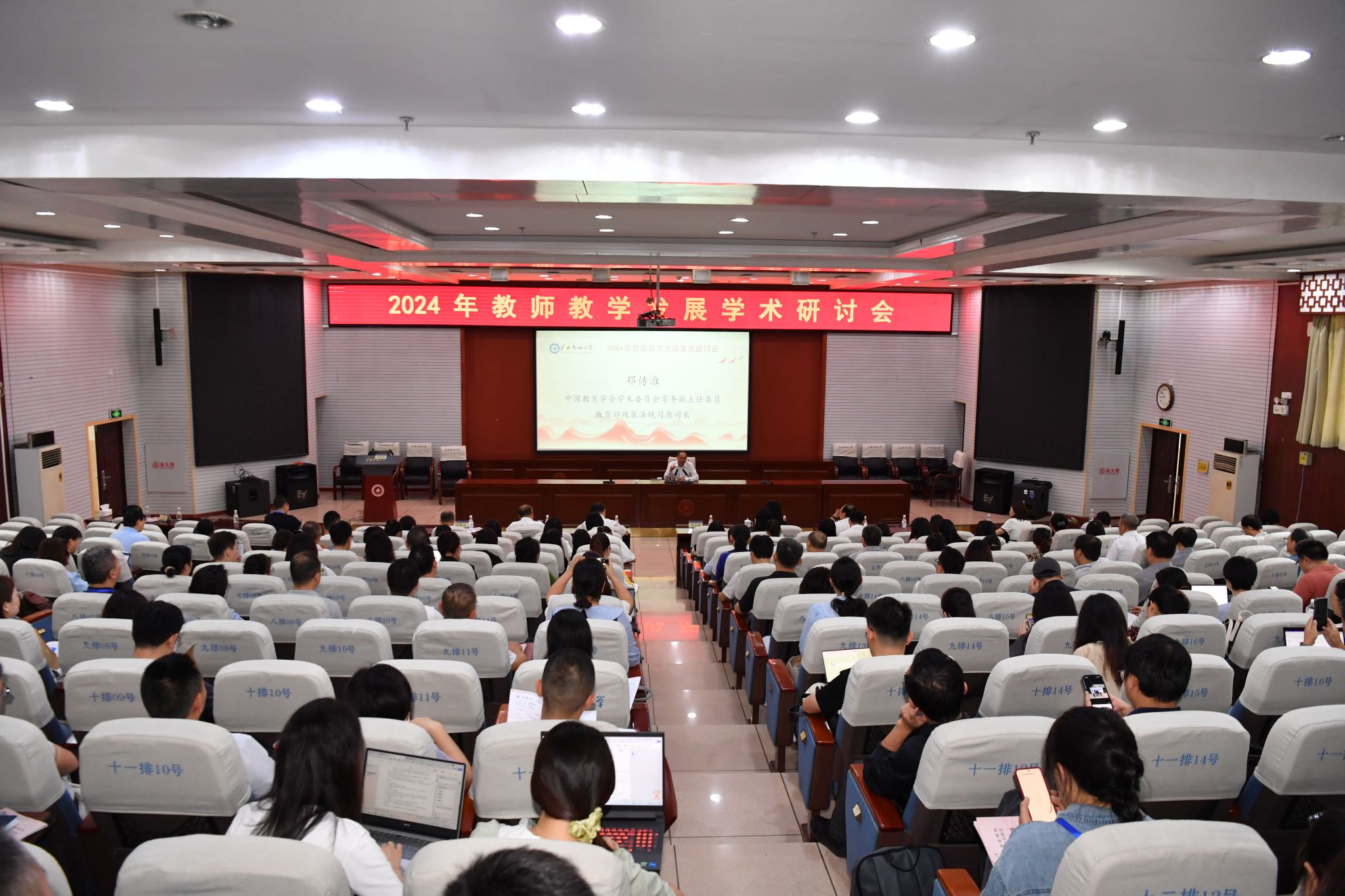 【大學生通訊社報道】10月19日至20日,由廣西民族大學、中南民族大學聯合主辦的 “大力弘揚教育家精神,加強新時代教師隊伍建設” 2024年教師教學發展學術研討會在廣西民族大學召開。中國教育學會學術委員會常務副主任委員、教育部政策法規司原司長鄧傳淮,廣西民族大學黨委書記卞成林,黨委副書記、校長韋仕珍分別出席開幕式和分論壇。廣西民族大學黨委常委、副校長姜明國,中南民族大學黨委常委、副校長李紅燕主持研討會。來自區內外24所高校的300余名教師參會。