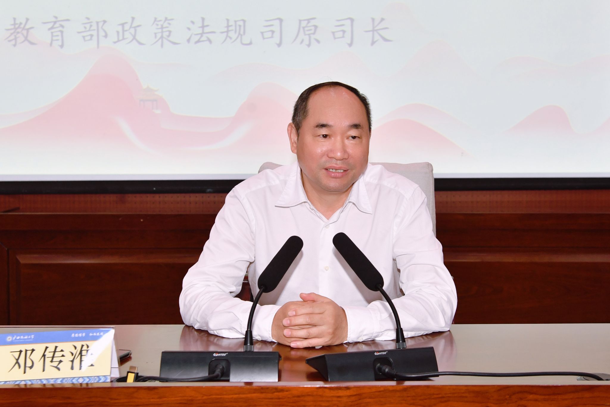 鄧傳淮應邀作“深入學習領會習近平總書記關于教育的重要論述,大力弘揚教育家精神”的專題報告,報告圍繞習近平總書記提出的“九個堅持”、教育的根本問題、加快推進教育強國建設和弘揚踐行教育家精神等做了深入的解讀和闡釋。報告過程中,鄧傳淮還結合自己的工作經歷和人生閱歷,談了如何更好地為學、為事、為人的體會。