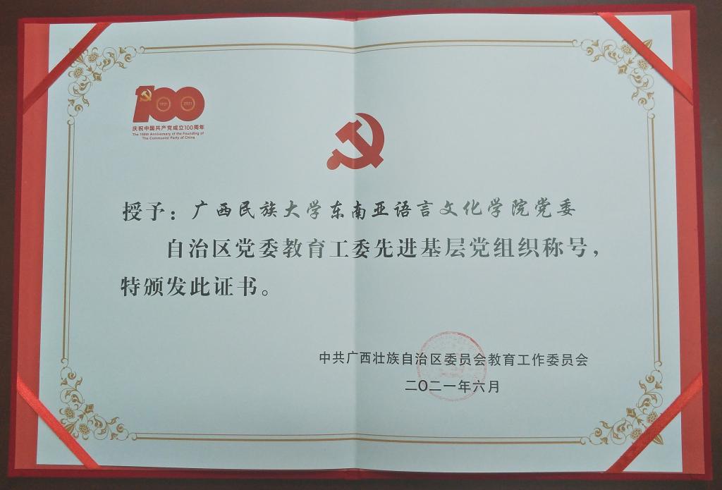 學院黨委獲自治區黨委教育工委先進基層黨組織稱號