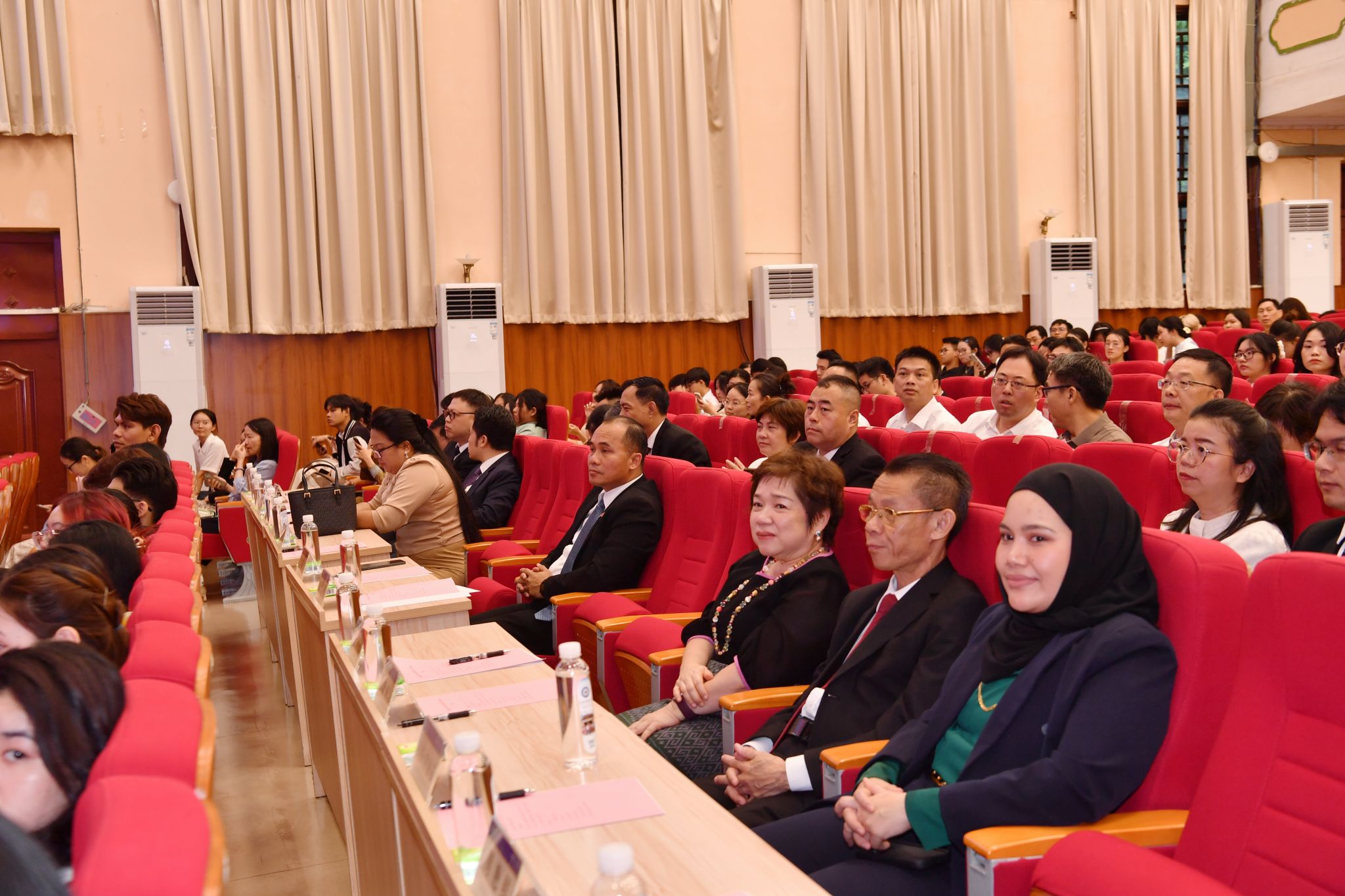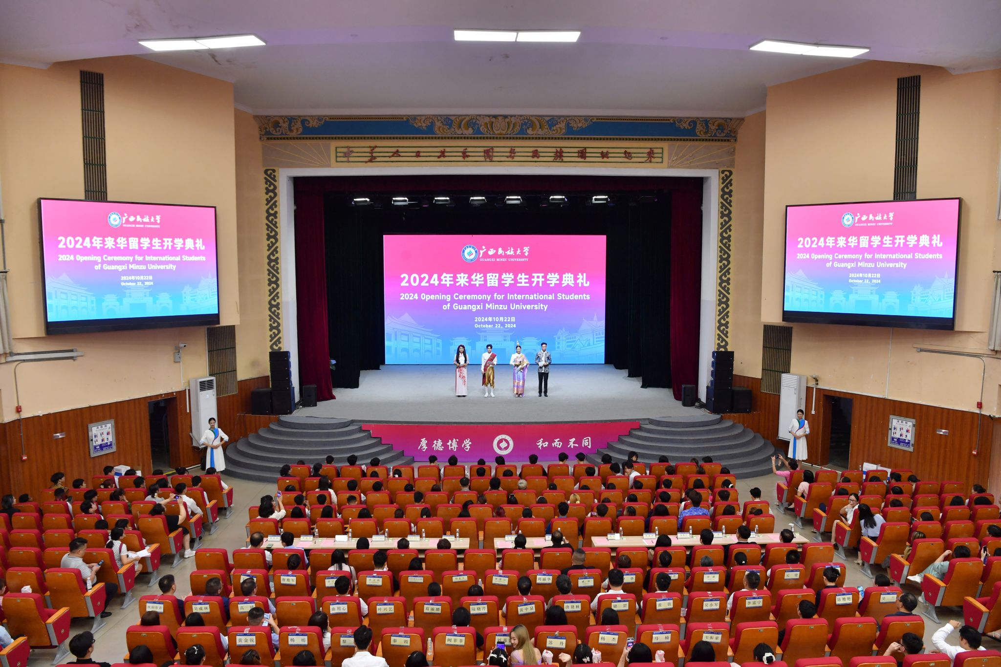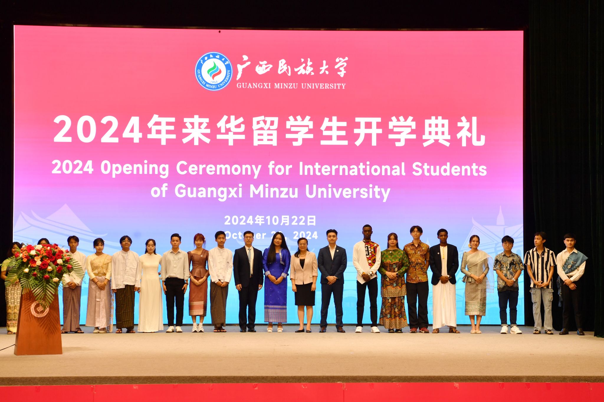 【大學生通訊社報道】10月22日下午,廣西民族大學2024年來華留學生開學典禮在相思湖校區禮堂舉行。廣西民族大學校長韋仕珍,泰國駐南寧總領事館總領事彬嘉瑪·塔維她雅濃,柬埔寨駐南寧總領事館總領事唐肅安,老撾駐南寧總領事館總領事翁巴努·西巴色,緬甸駐南寧總領事館總領事凱素林,越南駐南寧總領事館領事范維平,馬來西亞駐南寧總領事館副領事法拉·伊麗莎等出席。副校長高興宇主持。