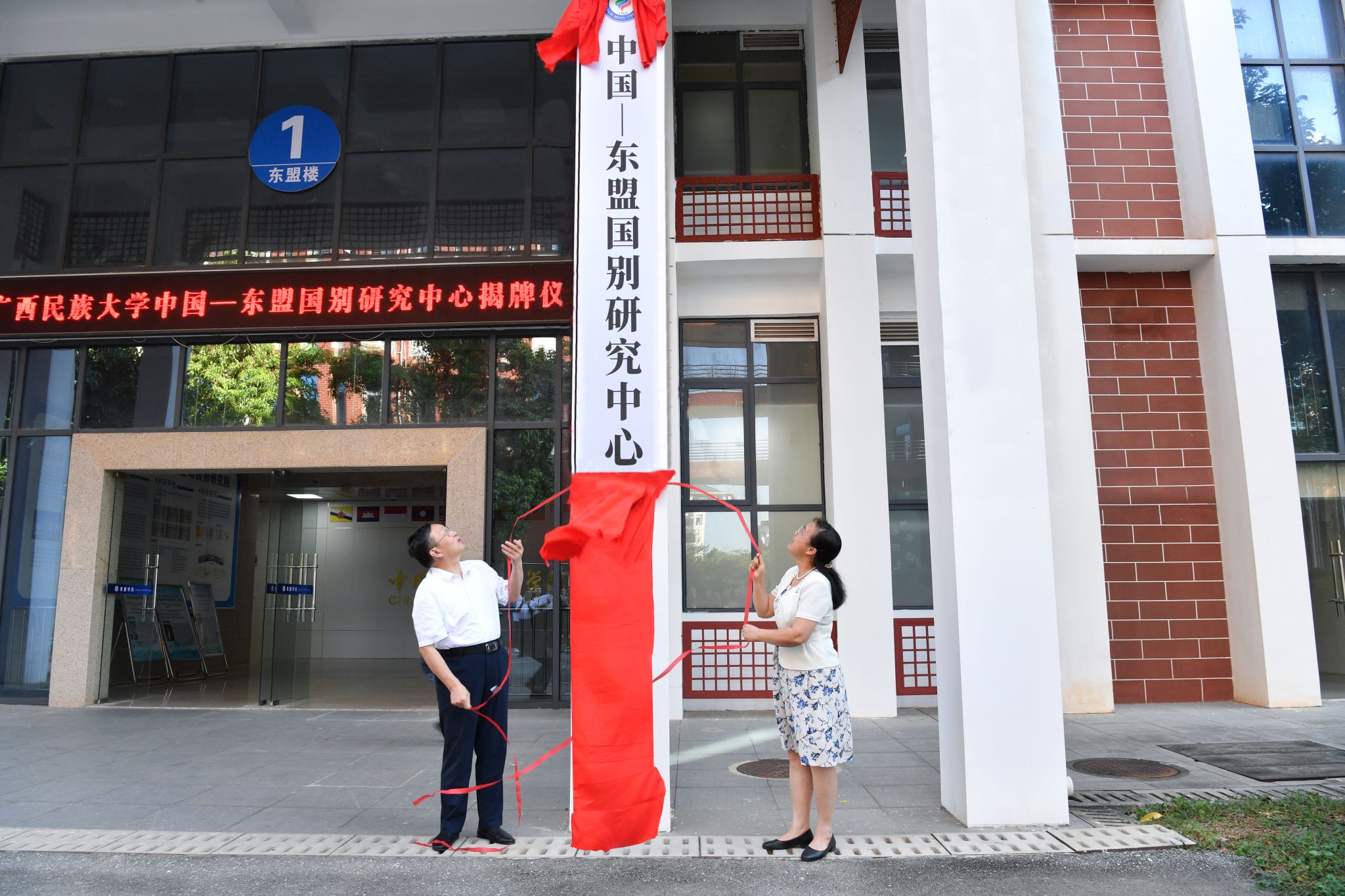 卞成林、韋仕珍共同為中國-東盟國別研究中心揭牌