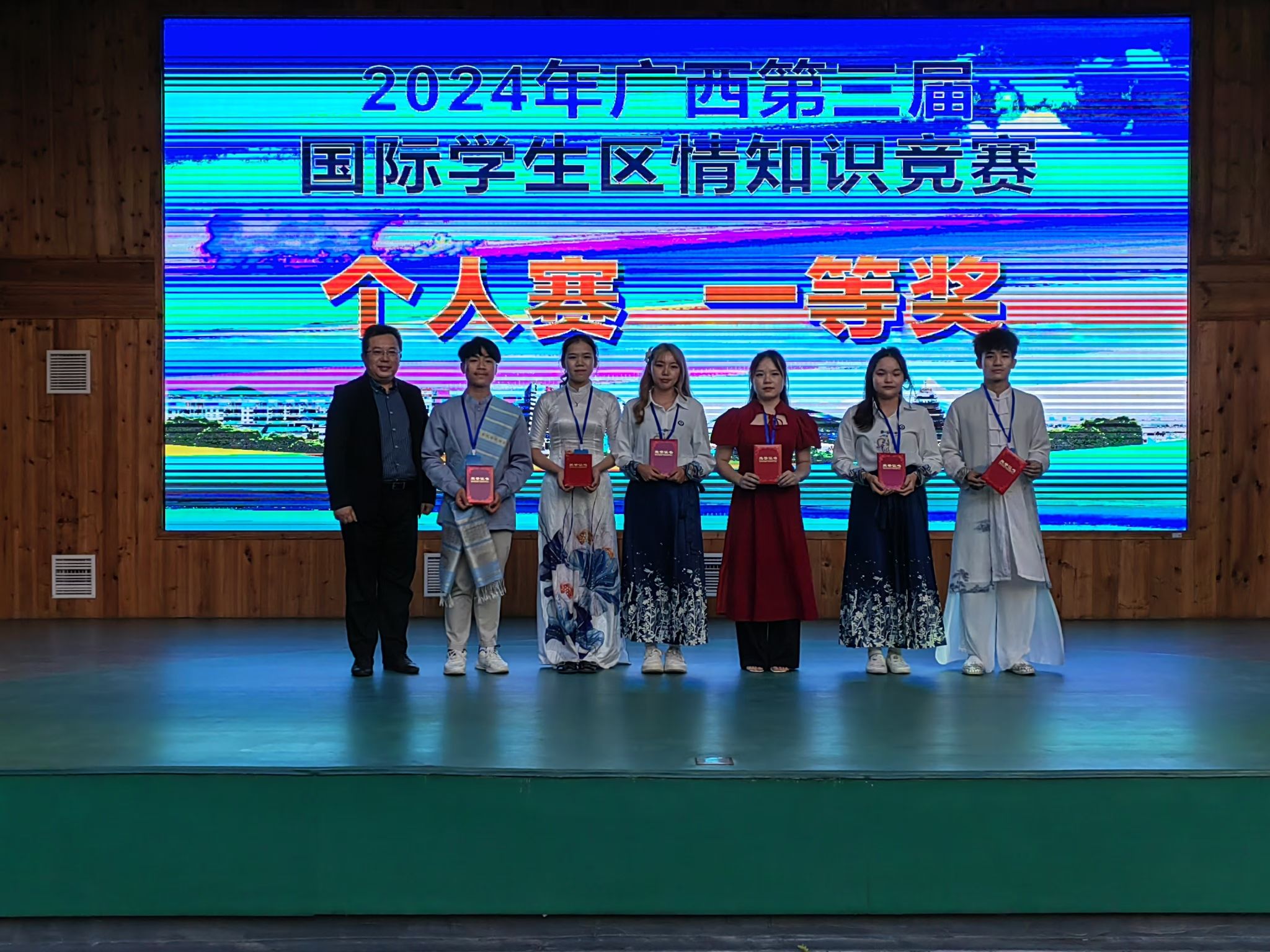 10月24—25日,由廣西高等教育學會外國留學生教育管理專業委員會主辦的2024年廣西第三屆國際學生區情知識競賽在柳州舉行。廣西民族大學留學生潘陳立春、吳麗玲榮獲個人賽一等獎,阮玉英榮獲個人賽二等獎。團體賽中榮獲三等獎。