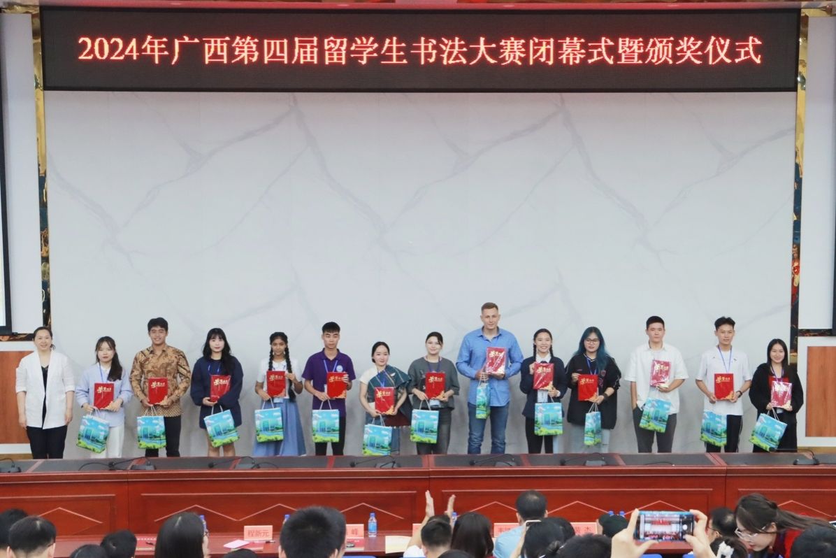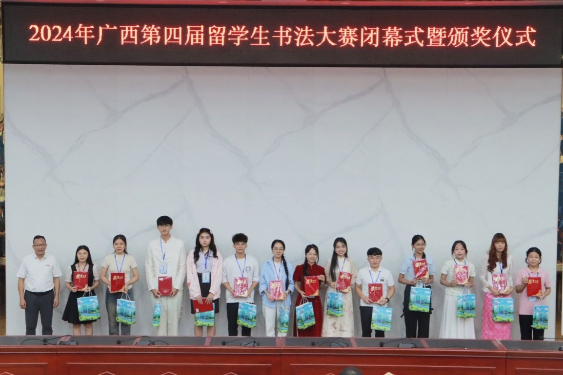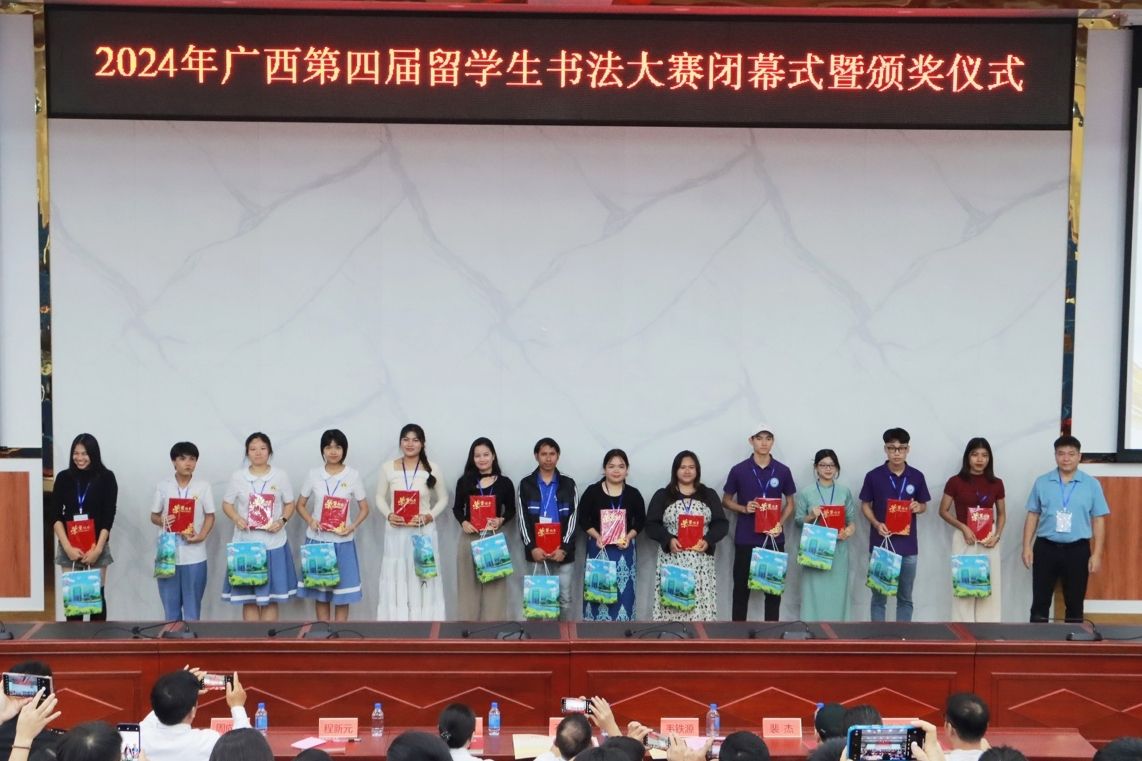 11月1日,由廣西高等教育學(xué)會外國留學(xué)生教育管理專業(yè)委員會主辦的2024年廣西第四屆留學(xué)生書法大賽在玉林舉行。廣西民族大學(xué)留學(xué)生阮河芳、陳氏日夏獲硬筆書法特等獎,梁禮賽獲軟筆書法特等獎,李黛獲軟筆書法一等獎,阮氏明秋獲硬筆書法二等獎。