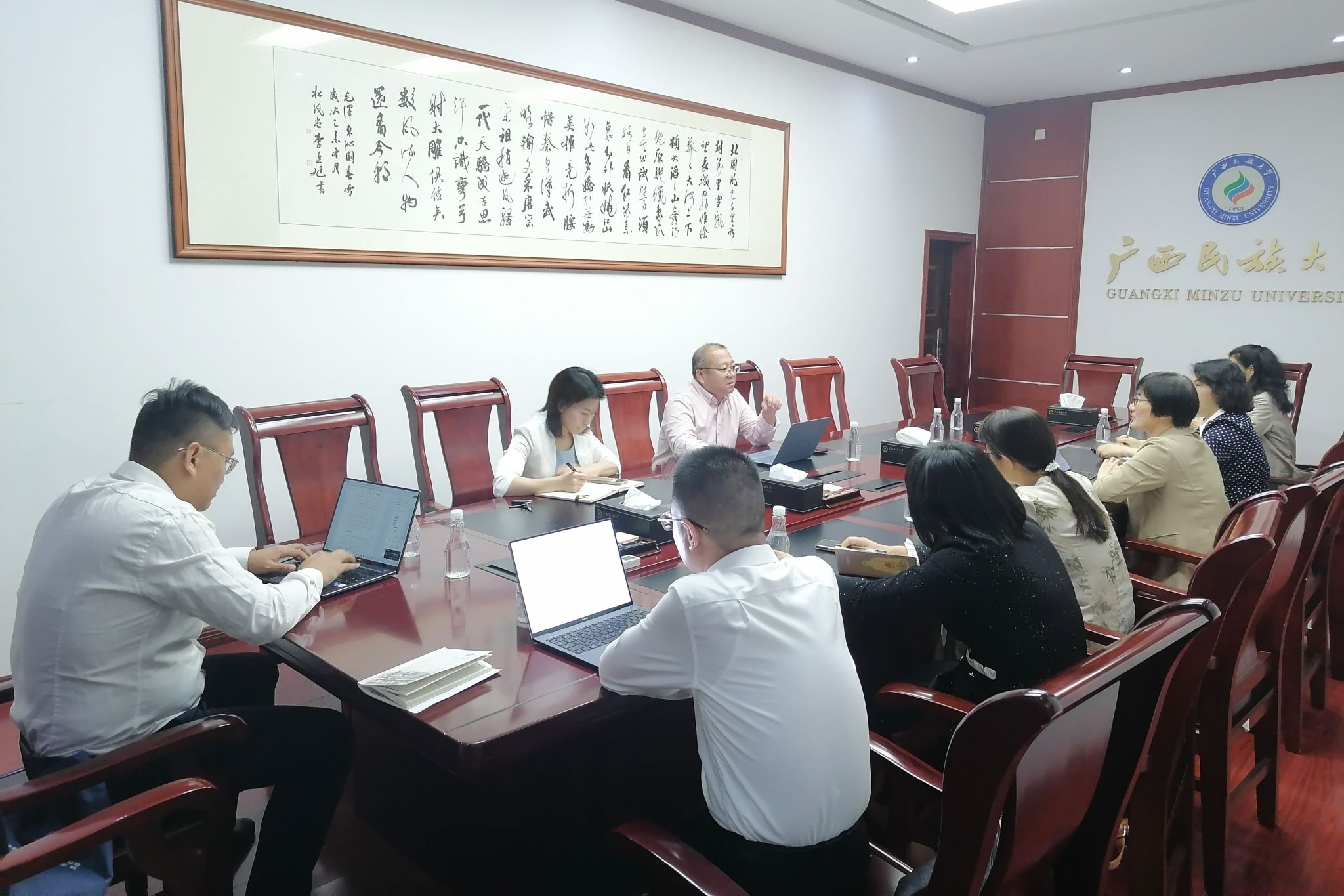 11月8日,學(xué)校黨委常委、副校長姜明國主持召開教學(xué)成果獎培育工作布置會時強調(diào),要緊跟教育部最新政策要求,提高站位,全面挖掘我校國際化辦學(xué)資源,培育彰顯民大特色、面向東盟的高水平高質(zhì)量教學(xué)成果項目。(初審/劉銀妹 復(fù)審/潘之銘 終審/王文娟)