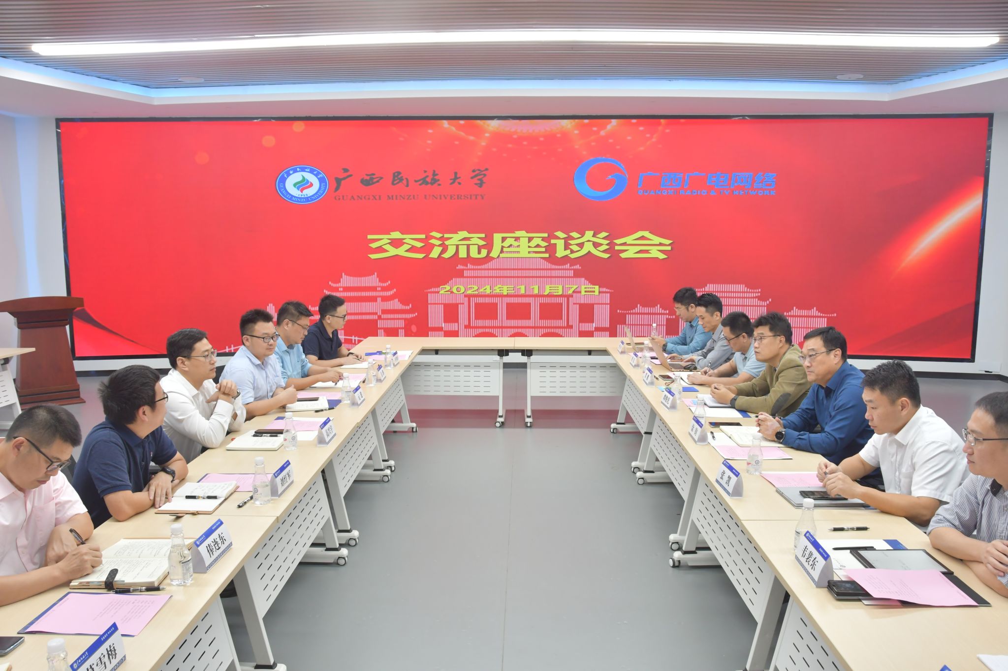 11月7日,學(xué)校黨委常委、副校長高興宇會見廣西廣電網(wǎng)絡(luò)科技發(fā)展有限公司副總經(jīng)理涂鈞一行。雙方表示,將繼續(xù)深化合作,加強溝通交流,推動智慧校園建設(shè)和大數(shù)據(jù)應(yīng)用,提高學(xué)校信息安全度,構(gòu)建數(shù)字化校園,保障孔子學(xué)院遠程跨國信息化交流和合作,共同推動學(xué)校文化宣傳工作高質(zhì)量發(fā)展。(初審/劉紅軍 復(fù)審/潘之銘 終審/王文娟)