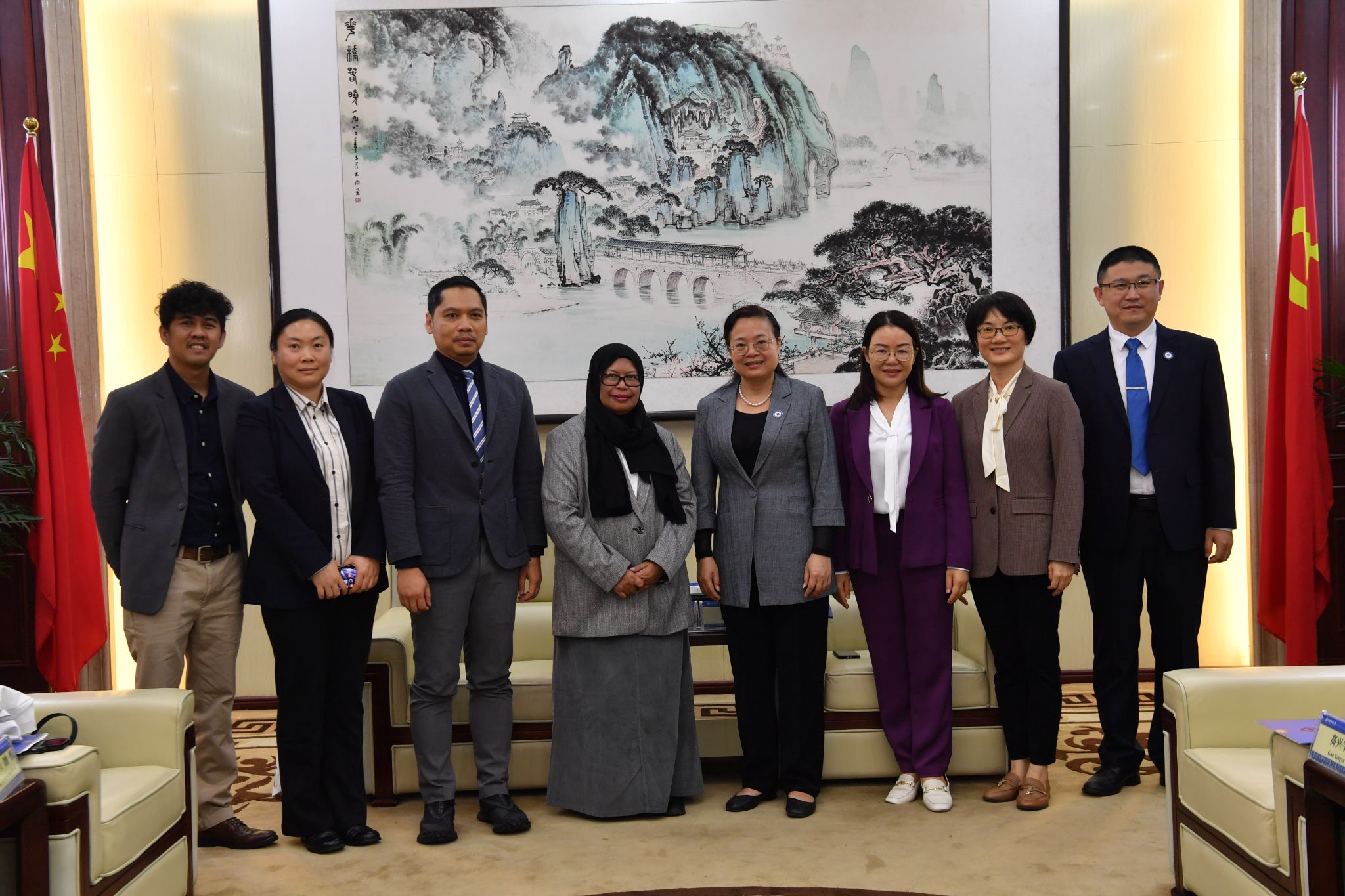【大學生通訊社報道】11月21日上午,印尼西爪哇省代表團訪問廣西民族大學。廣西民族大學校長韋仕珍,副校長高興宇在國際合作與交流處一樓接待室會見印尼西爪哇省區域督察埃尼·羅亞尼一行。
