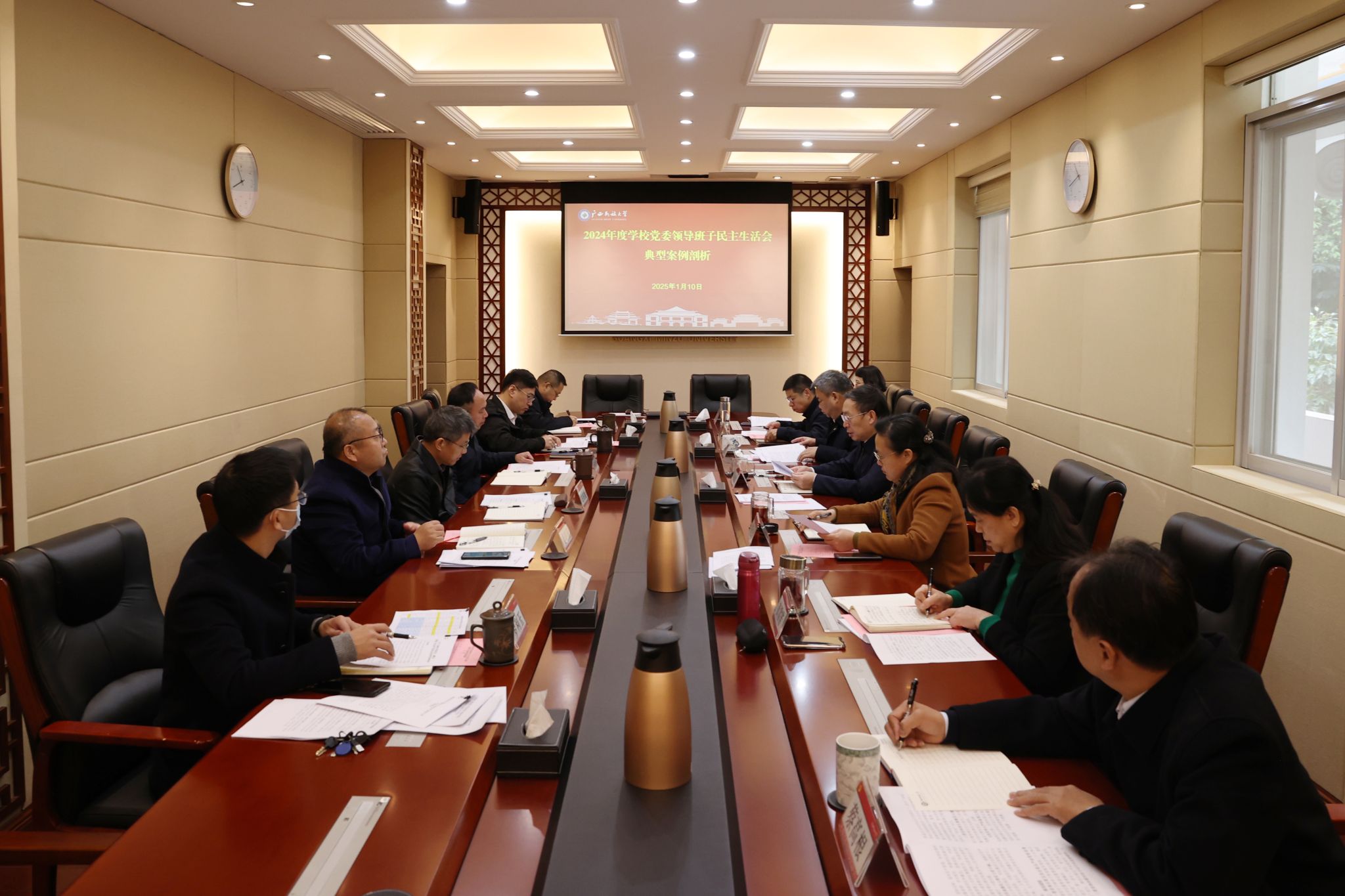 1月10日上午,廣西民族大學黨委領導班子召開2024年度民主生活會典型案例剖析會。學校黨委書記卞成林主持會議并講話,黨委領導班子成員參加會議。