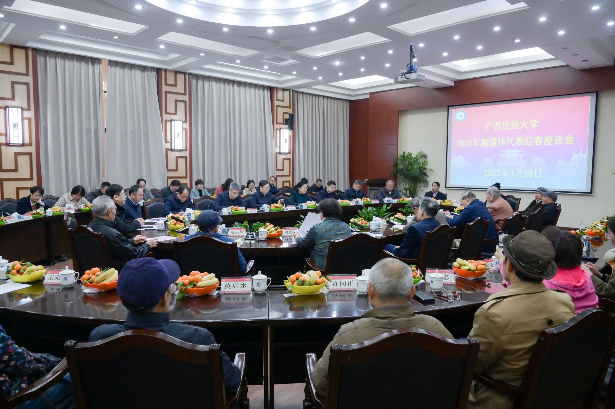 【大學(xué)生通訊社報道】1月18日上午,廣西民族大學(xué)在相思湖校區(qū)召開2025年離退休代表迎春座談會。學(xué)校黨委書記卞成林,黨委副書記、校長韋仕珍,黨委副書記陳銘彬、鄧國彬,黨委常委、副校長蔡高根、呂俊彪、何立榮、姜明國、高興宇,原學(xué)校領(lǐng)導(dǎo)奉江、李尚平、楊再延、朱耀樞等離退休老同志代表及有關(guān)職能部門負(fù)責(zé)人參加會議。會議由鄧國彬主持。