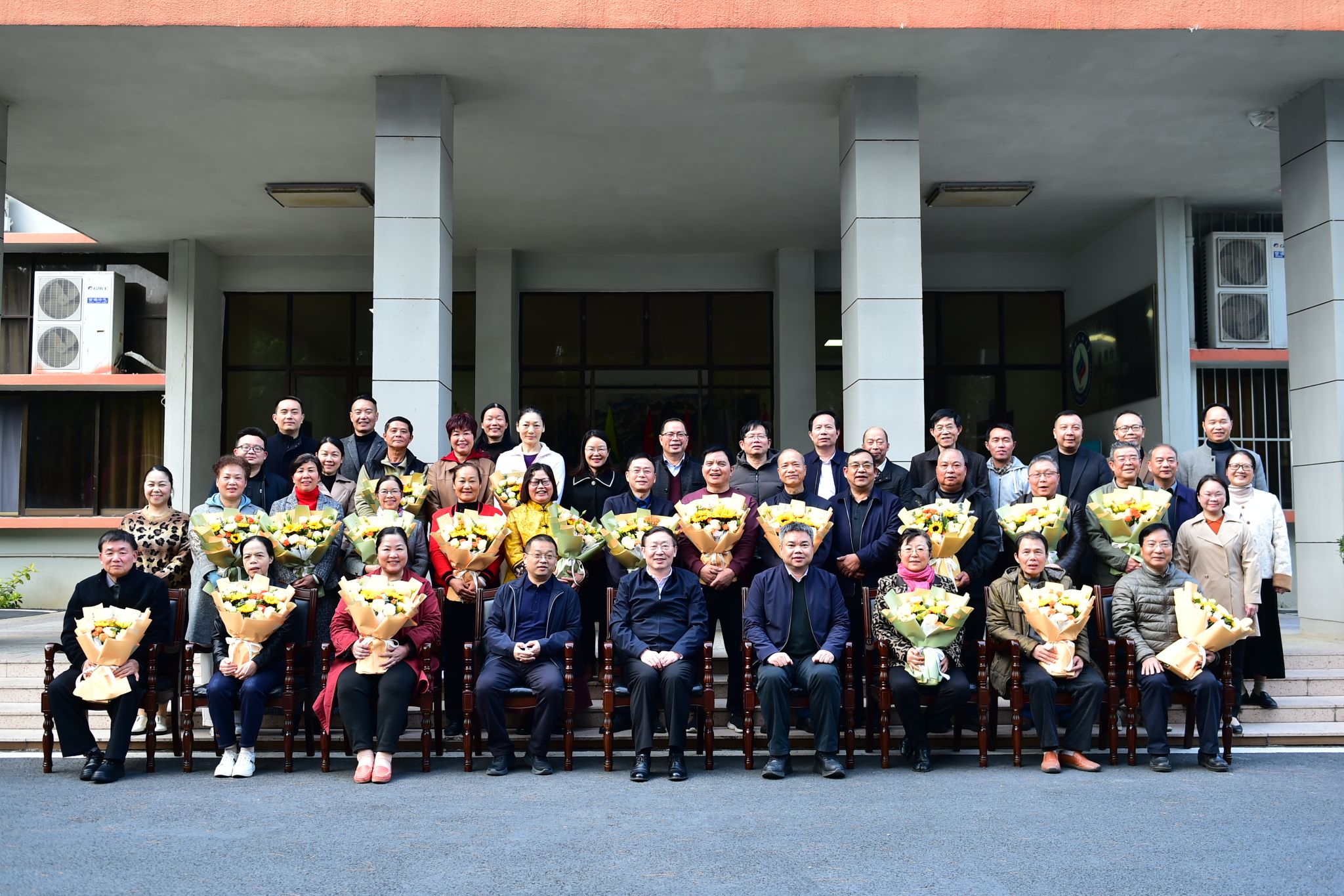 卞成林與各單位負責人逐一為榮休會員贈送鮮花和紀念品。會后,全體與會人員合影留念。(初審:何波 復審:榮子卿 終審:孫壽媚)