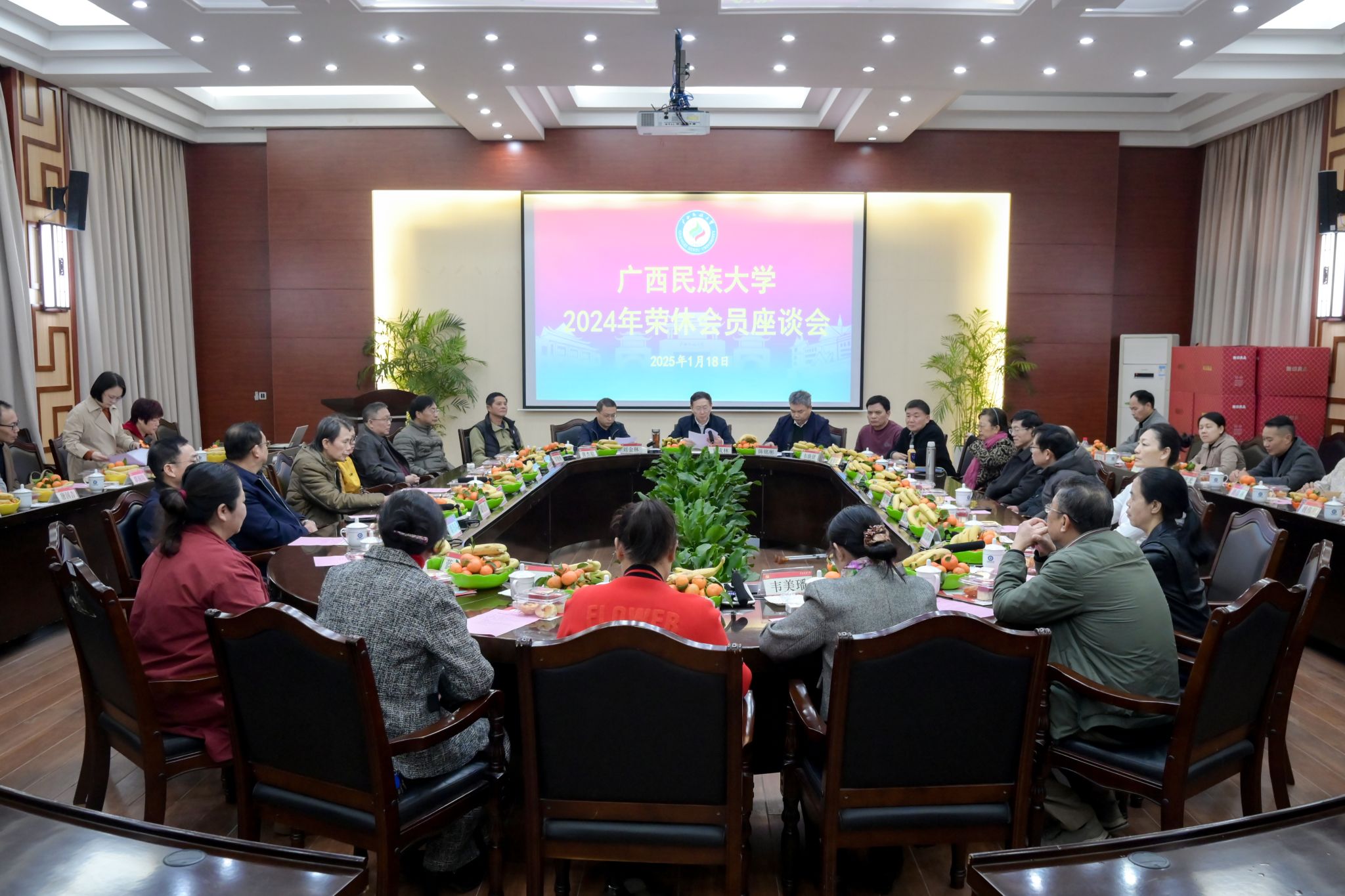 【大學生通訊社報道】1月18日下午,廣西民族大學在相思湖校區召開2024年工會榮休會員座談會。學校黨委書記卞成林出席會議并講話。學校黨委副書記、工會主席陳銘彬主持會議。黨委辦公室、校長辦公室、校工會、離退休人員工作處、人事處等職能部門和各榮休會員所在單位負責人,2024年從教學、管理、教輔工勤崗位退休的教職工代表參加會議。