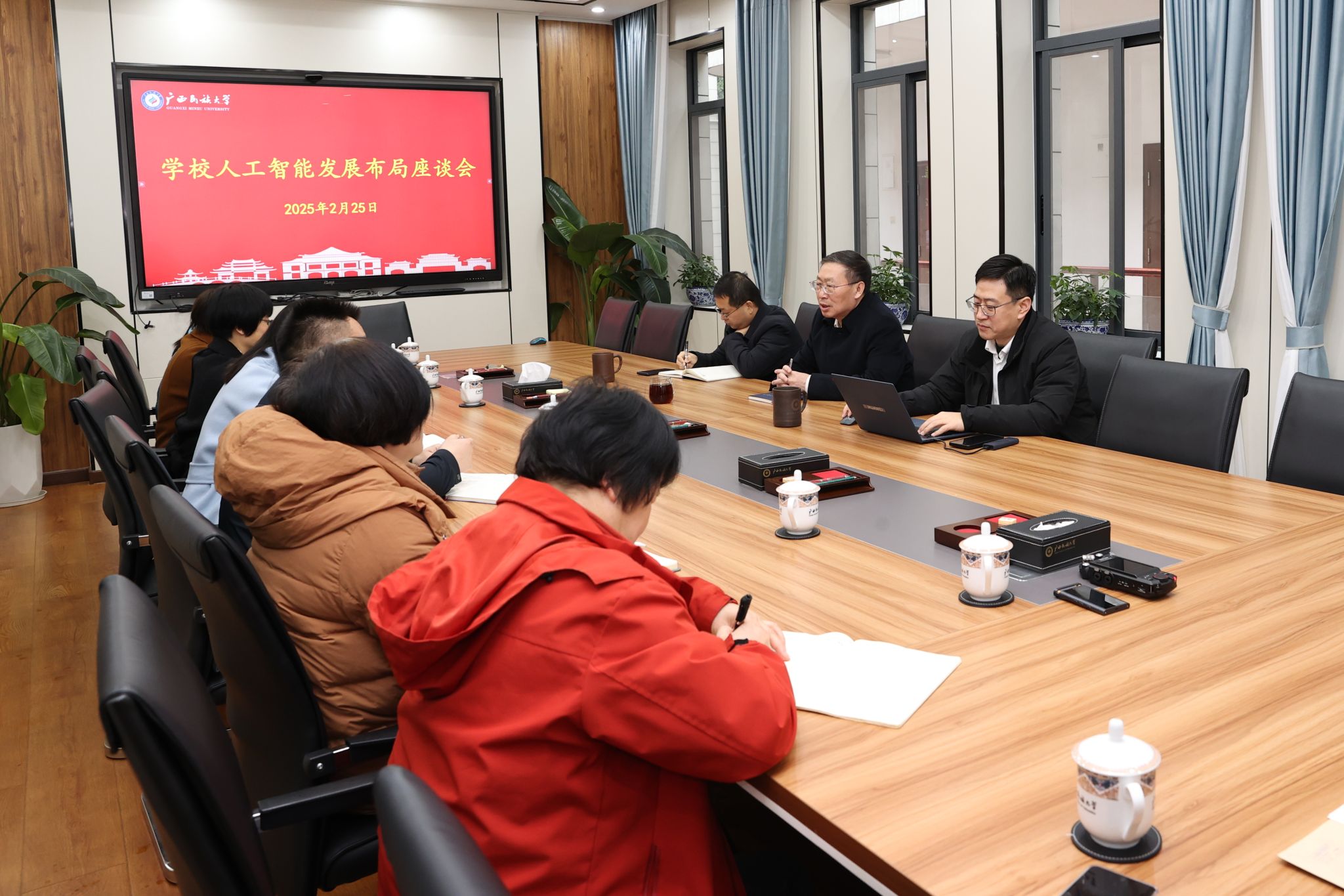 【大學生通訊社報道】2月25日上午,廣西民族大學在辦公樓302會議室召開人工智能發展布局座談會,學校黨委書記卞成林主持會議并講話,黨委常委、副校長高興宇出席會議。有關職能部門和學院負責人參加會議。