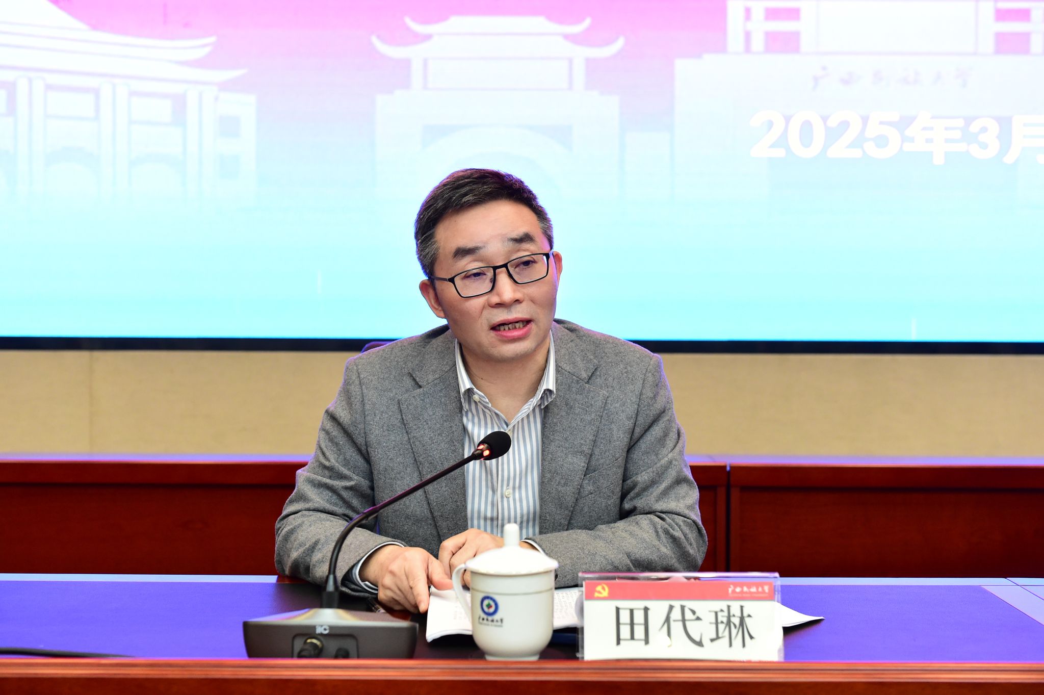 全國人大代表、自治區(qū)文聯(lián)主席、廣西民族大學(xué)文學(xué)影視創(chuàng)作中心主任田代琳傳達(dá)十四屆全國人大三次會議精神
