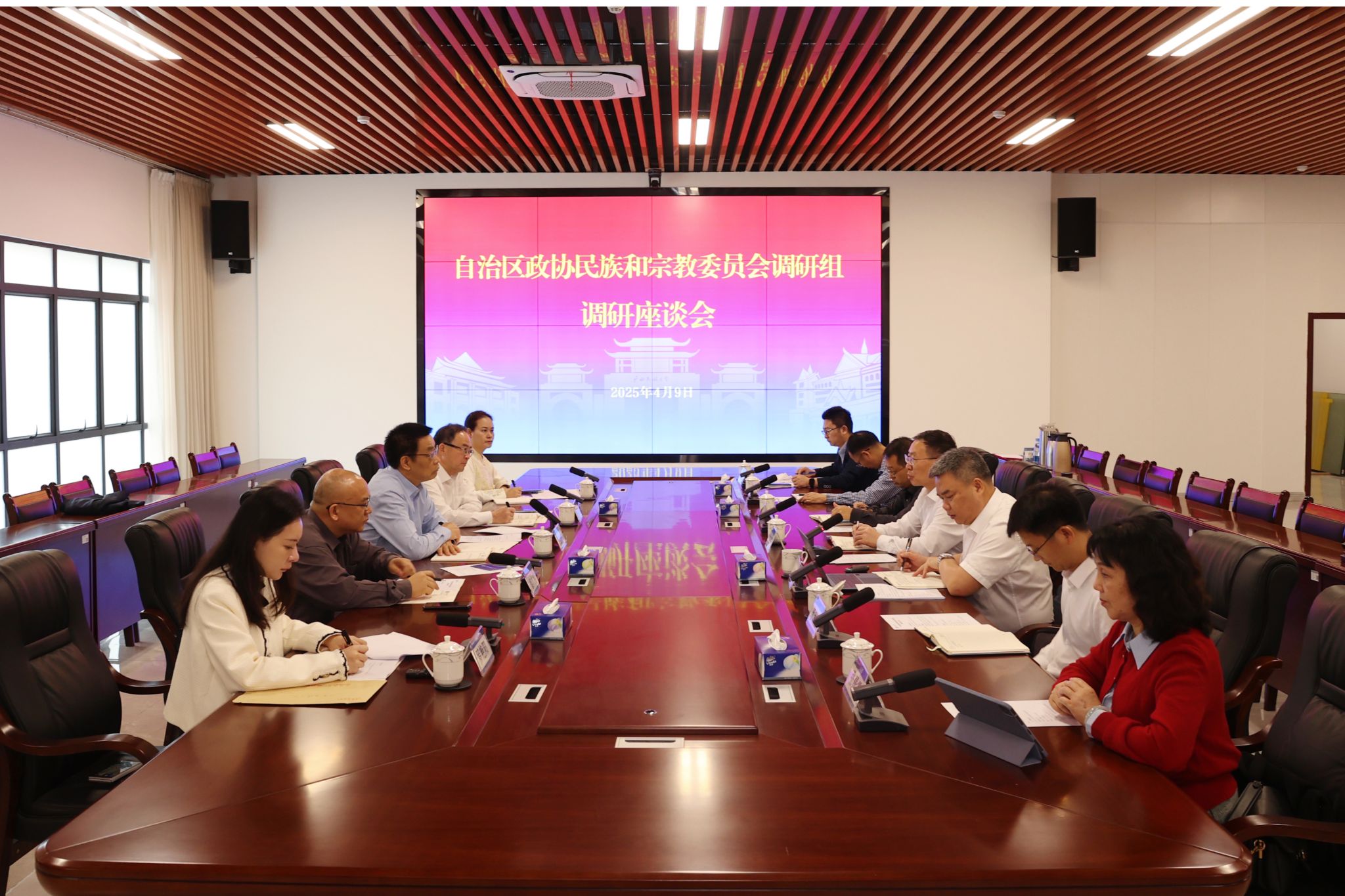 【大學(xué)生通訊社報道】4月9日上午,自治區(qū)政協(xié)民族和宗教委員會主任班忠柏率調(diào)研組到廣西民族大學(xué)廣西中華民族共同體意識研究院調(diào)研交流,廣西民族大學(xué)黨委書記卞成林,黨委副書記陳銘彬出席座談會。