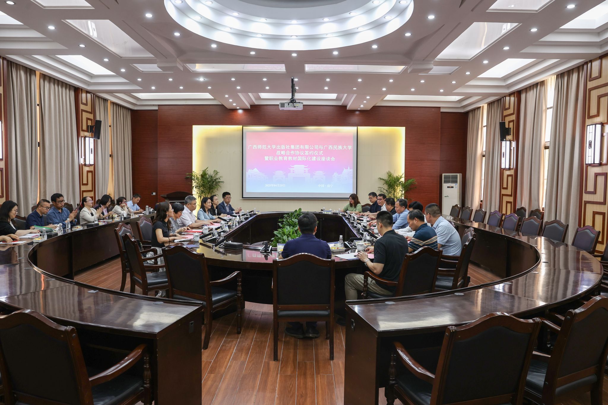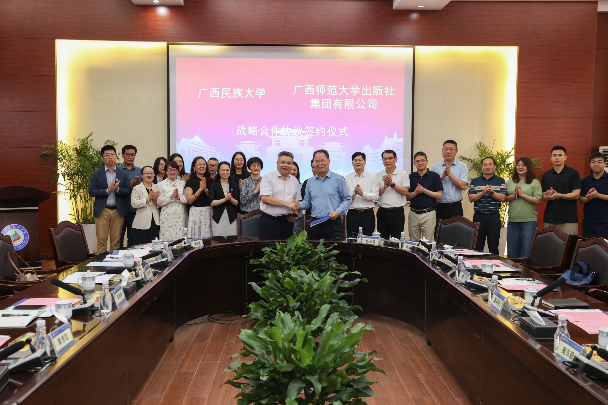 會上,雙方共同簽訂戰略合作協議。廣西師范大學出版社向廣西民族大學捐贈圖書。(初審:牟永紅 復審:潘之銘 終審:孫壽媚)