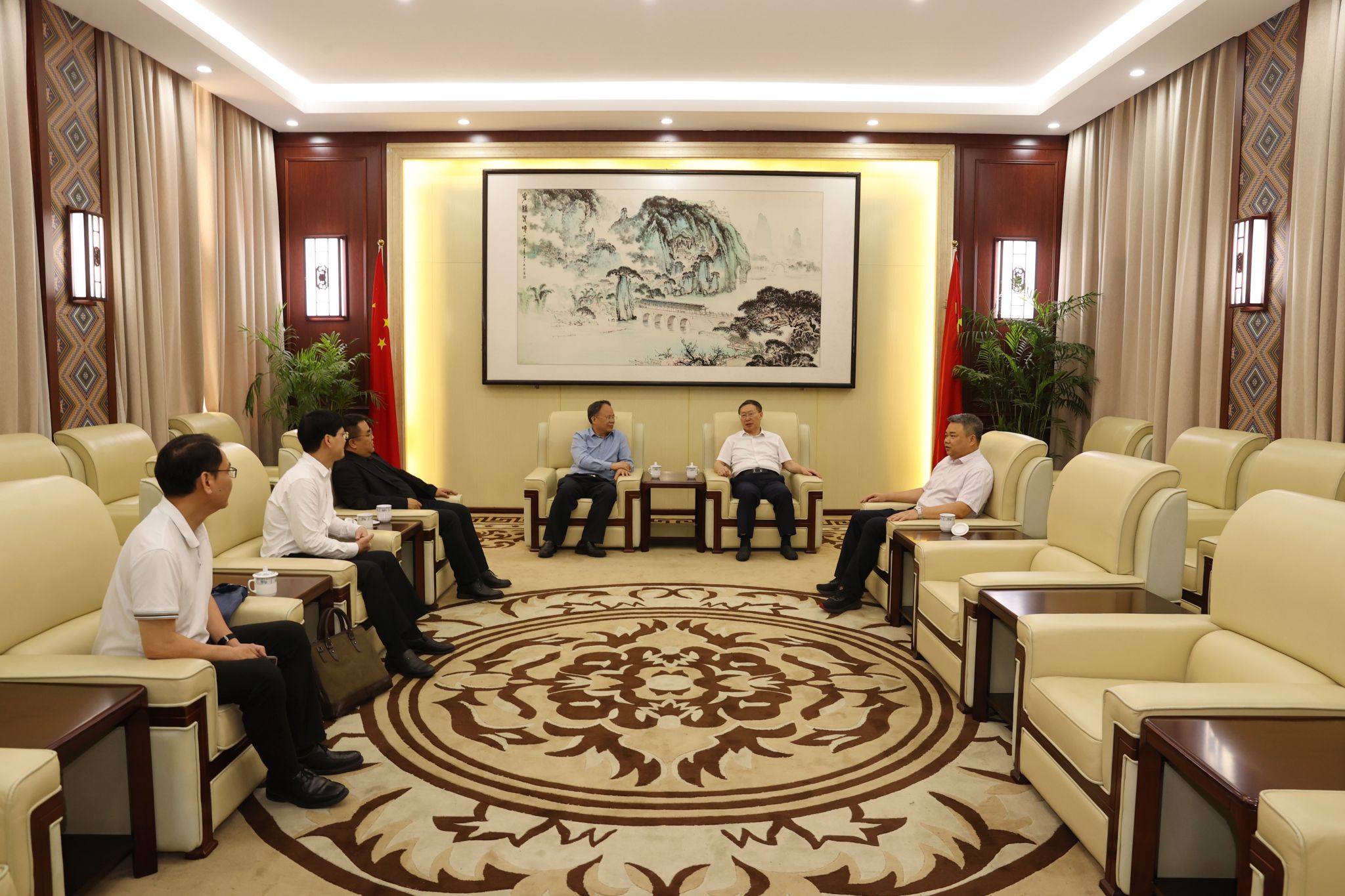 【大學生通訊社報道】4月25日上午,廣西師范大學出版社集團有限公司黨委書記、董事長黃軒莊一行到廣西民族大學交流。校黨委書記卞成林會見黃軒莊一行,校黨委副書記陳銘彬出席雙方舉行的職業教育教材國際化建設座談會。