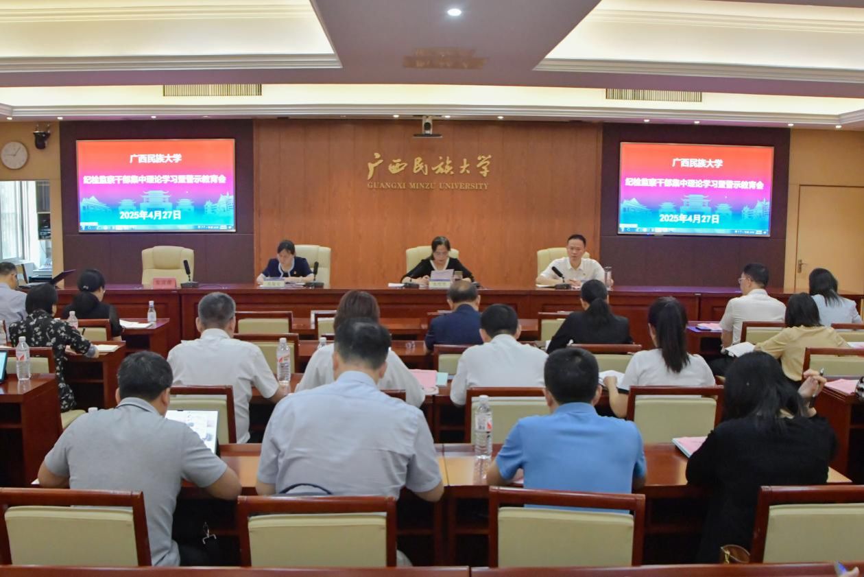 4月27日,自治區(qū)紀(jì)委監(jiān)委駐校紀(jì)檢監(jiān)察組組長(zhǎng)、校黨委副書(shū)記、紀(jì)委書(shū)記韋雪芳主持紀(jì)檢監(jiān)察干部集中理論學(xué)習(xí)暨警示教育會(huì),強(qiáng)調(diào)依托學(xué)科優(yōu)勢(shì),發(fā)揮前瞻引領(lǐng)作用,群策群力規(guī)劃發(fā)展布局,加強(qiáng)宣傳思想文化工作集中領(lǐng)導(dǎo),推動(dòng)中華民族共同體意識(shí)深入人心,為鑄牢中華民族共同體意識(shí)示范區(qū)建設(shè)貢獻(xiàn)力量。(初審/李濟(jì)權(quán) 復(fù)審/榮子卿 終審/孫壽媚)
