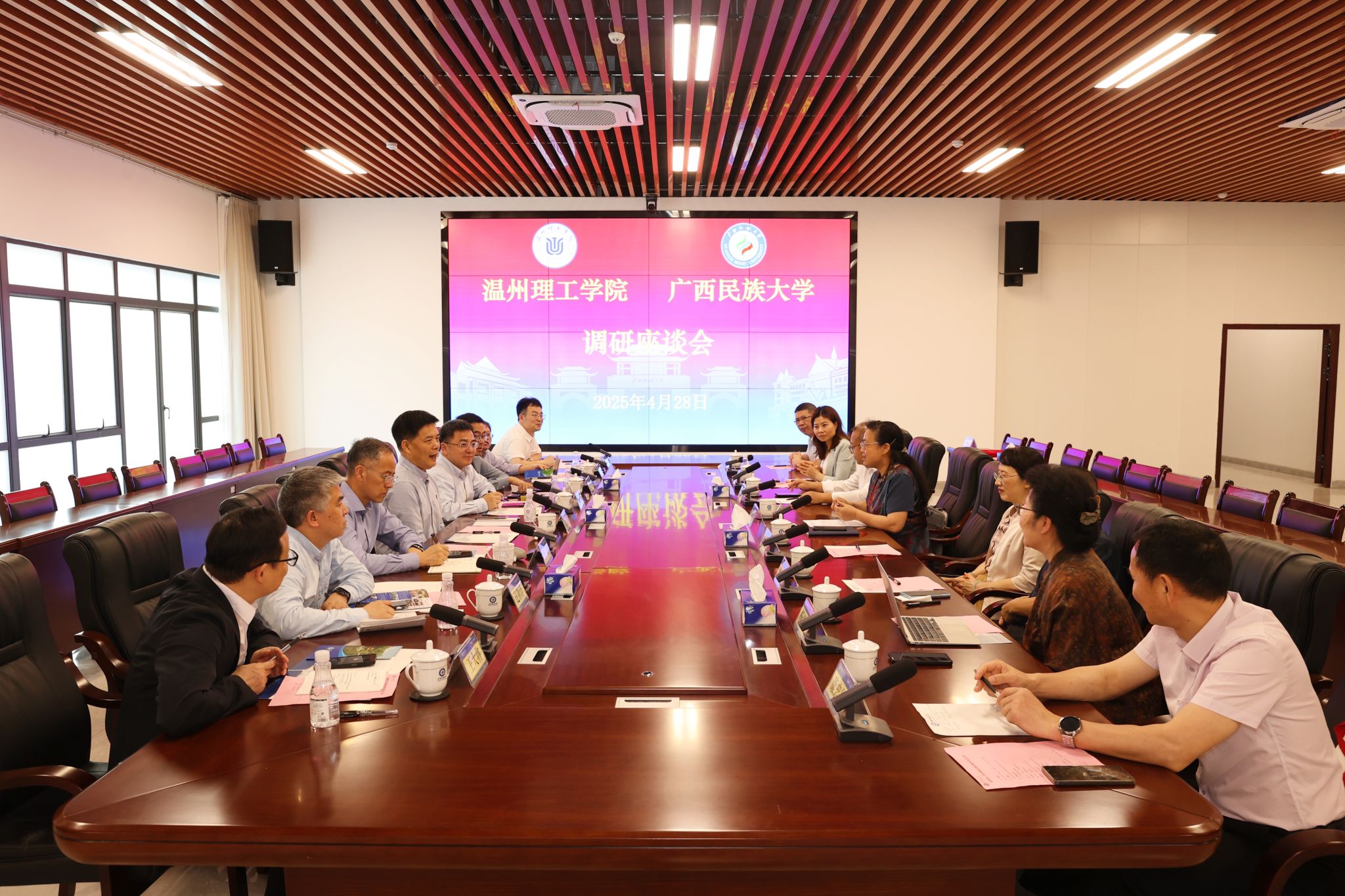 【大學生通訊社報道】4月28日下午,廣西民族大學校長韋仕珍會見來校調(diào)研的溫州理工學院校長周文龍一行。雙方召開座談會并簽訂合作協(xié)議。廣西民族大學副校長黃曉娟、姜明國,溫州理工學院黨委副書記呂朝暉出席座談會。會議由姜明國主持。