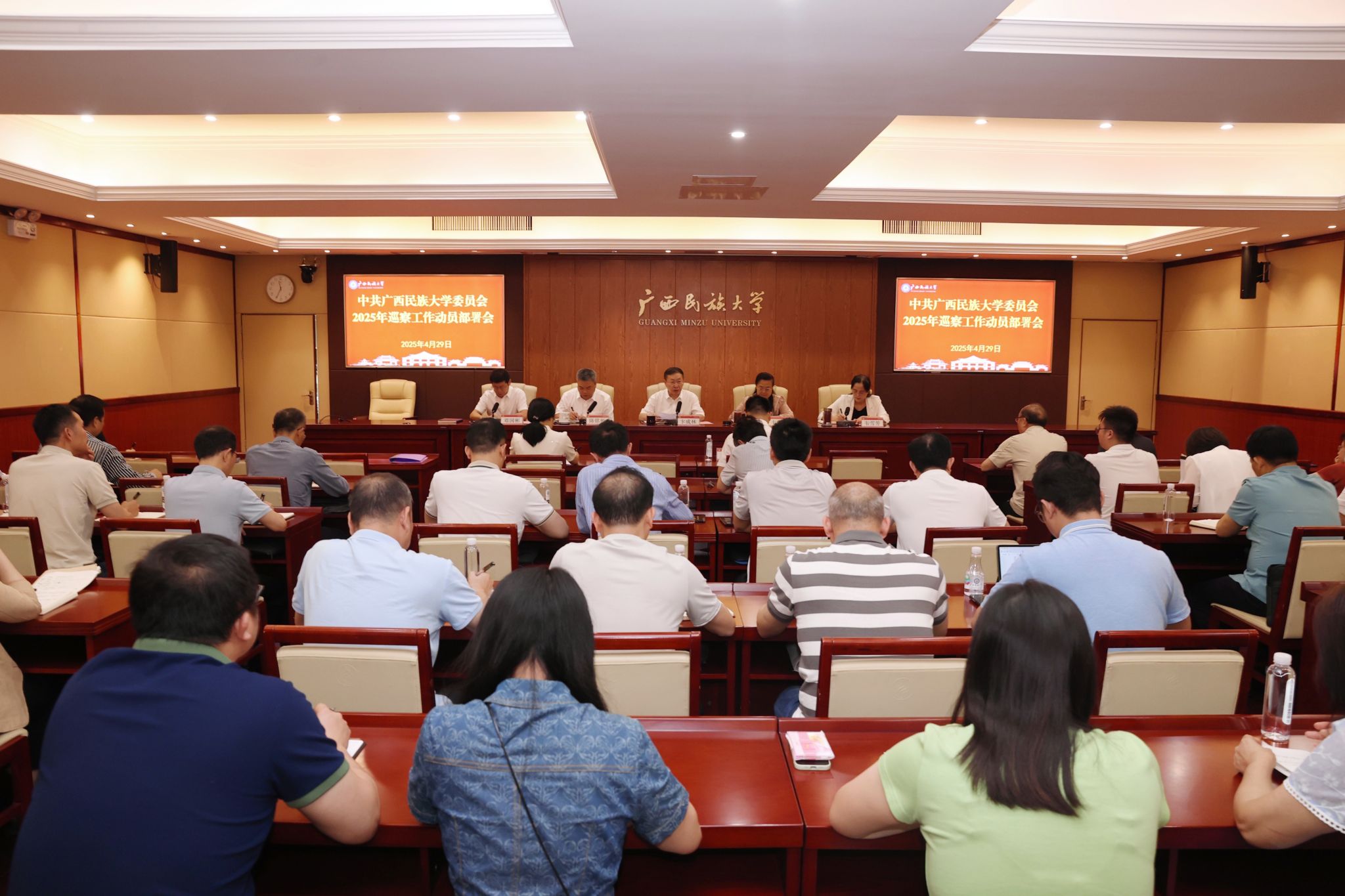 【大學生通訊社報道】4月29日上午,廣西民族大學在辦公樓212室召開2025年巡察工作動員部署會。校黨委書記、黨委巡察工作領導小組組長卞成林出席會議并講話。校黨委副書記、校長韋仕珍,校黨委副書記陳銘彬,自治區(qū)紀委監(jiān)委駐校紀檢監(jiān)察組組長、校黨委副書記、紀委書記韋雪芳出席會議,校黨委副書記鄧國彬主持會議。