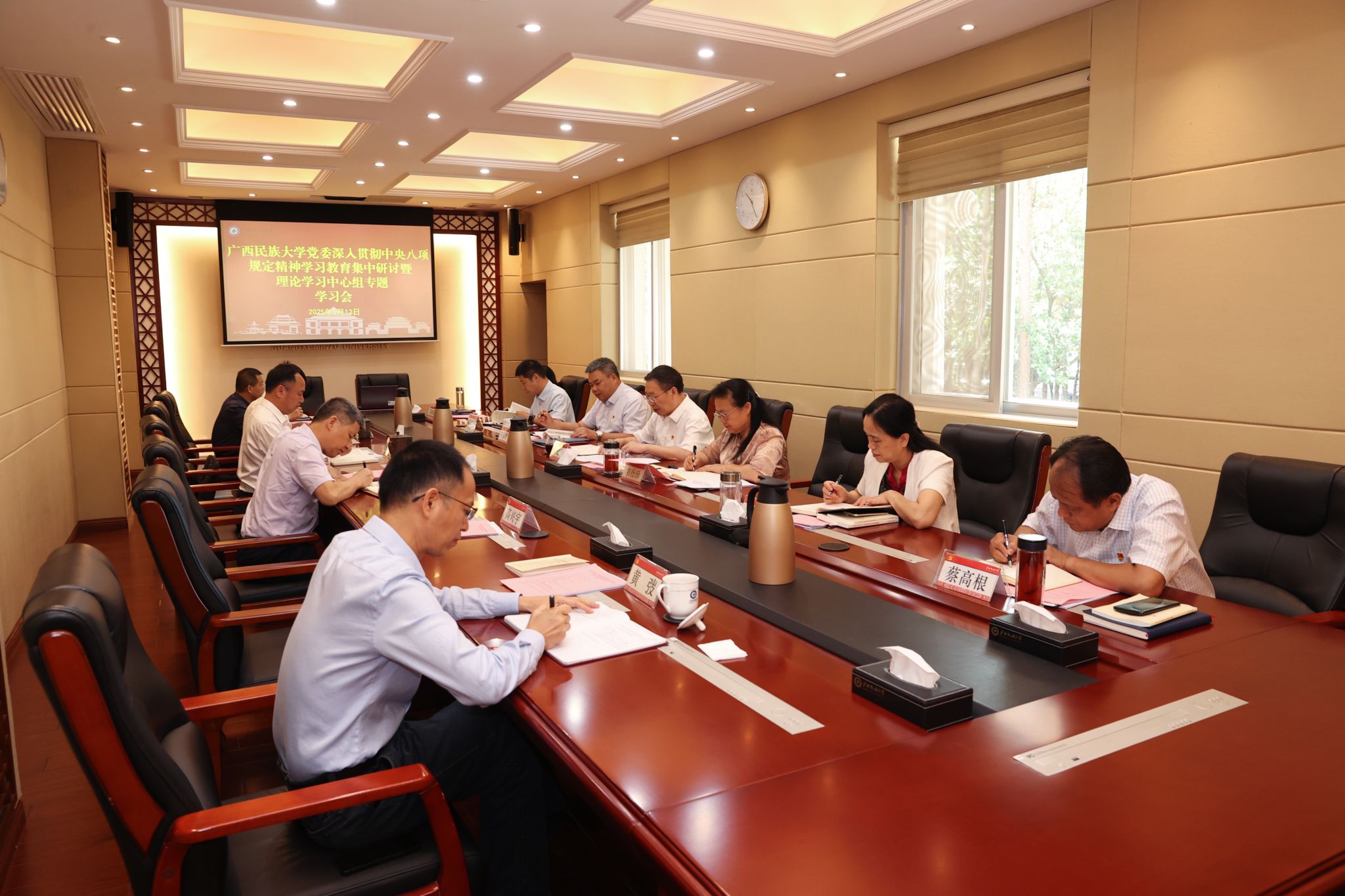 【大學生通訊社報道】5月12日上午,廣西民族大學黨委書記卞成林在辦公樓211會議室主持召開黨委深入貫徹中央八項規定精神學習教育集中研討暨理論學習中心組專題學習會,黨委副書記、校長韋仕珍及全體在家校領導參加會議。