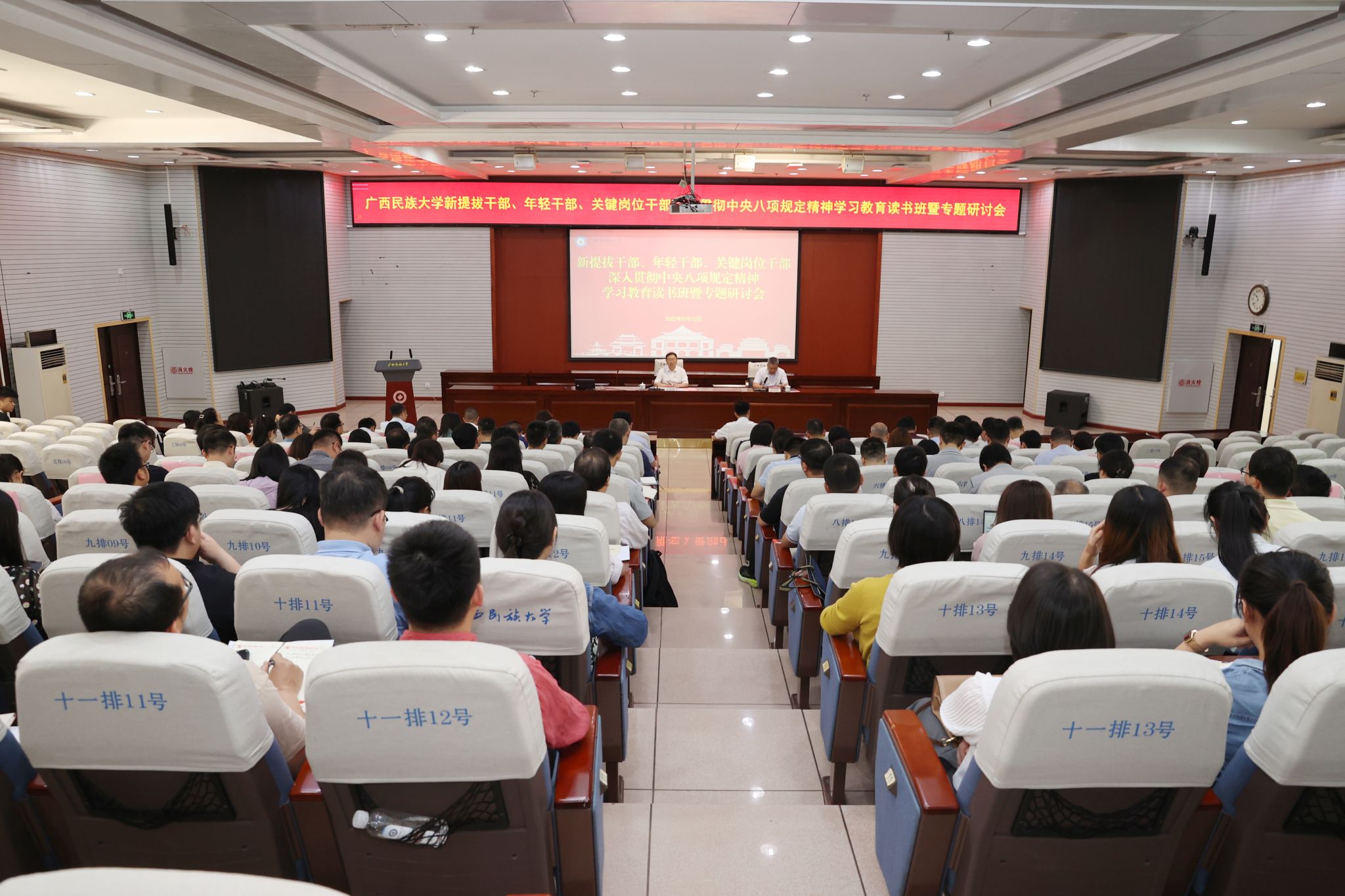 【大學生通訊社報道】5月12日上午,廣西民族大學在科技樓報告廳舉行新提拔干部、年輕干部、關鍵崗位干部深入貫徹中央八項規定精神學習教育讀書班暨專題研討會。校黨委書記卞成林出席會議并講話,黨委副書記陳銘彬主持會議,我校新提拔干部、年輕干部、關鍵崗位干部共134人參加會議。