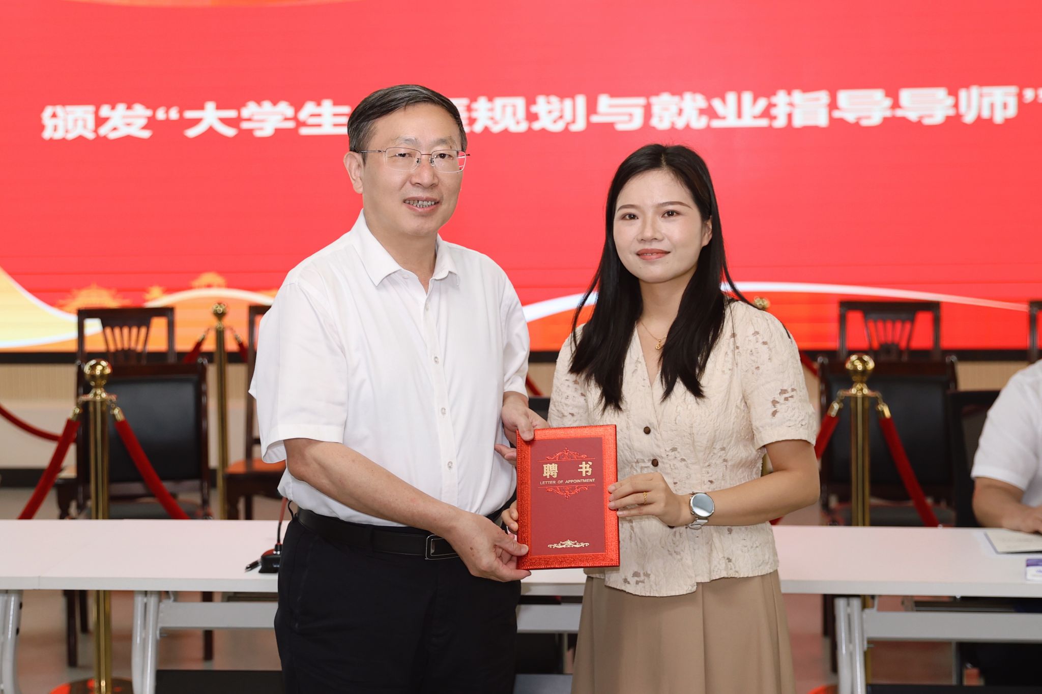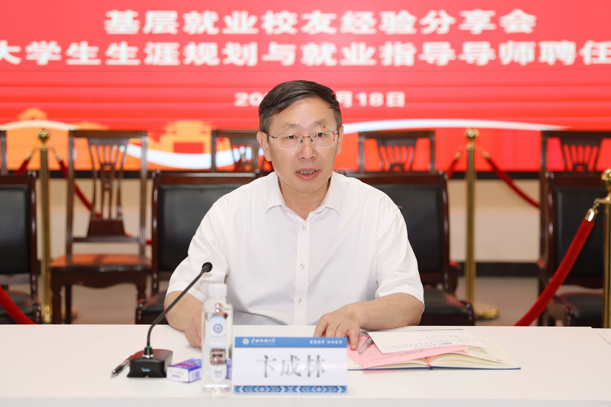 校黨委書記卞成林為校友頒發(fā)“大學生生涯規(guī)劃與就業(yè)導師”聘書