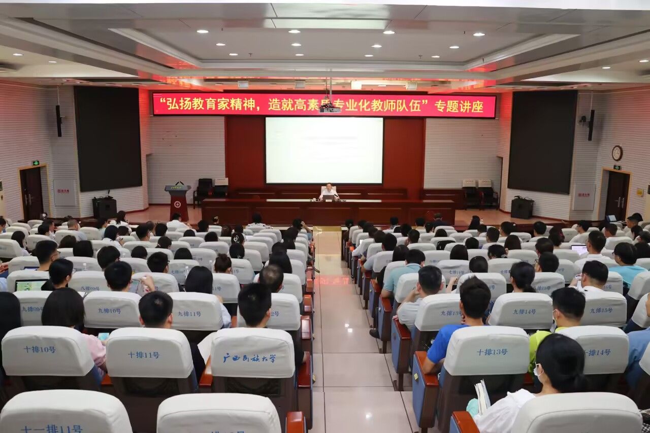 【大學生通訊社報道】5月20日下午,廣西民族大學在相思湖校區科技樓報告廳舉行“弘揚教育家精神”主題講座。校黨委書記卞成林作“深入貫徹習近平總書記關于教育的重要論述,爭做新時代大先生”專題輔導報告。各學院院長、教學副院長及近三年入職教職工參加講座。