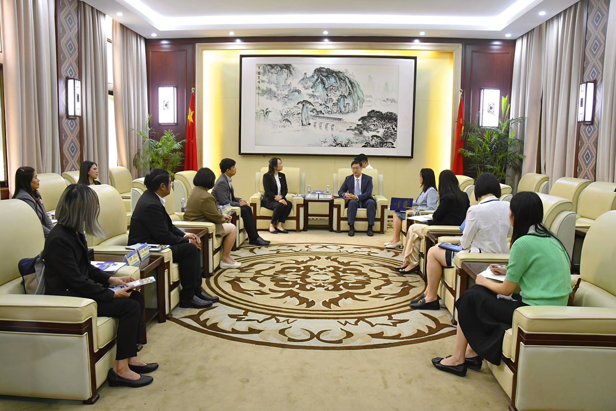 5月28日,高興宇會見教育部中外人文交流中心中外高水平大學學生交流計劃全國服務中心主任胡偉一行,雙方表示,將進一步優化政策支持與服務機制,培養復合型創新型國際化人才,實現資源優勢互補,共同推動“中高計劃”項目高質量實施和可持續發展。(初審/石岳 復審/榮子卿 終審/孫壽媚)