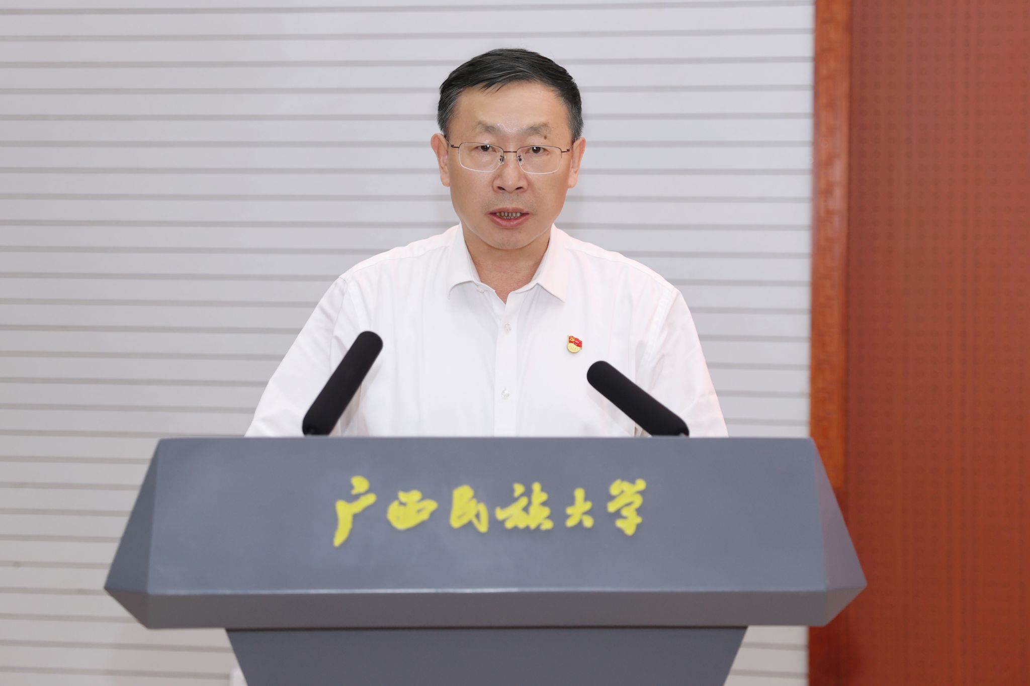 6月13日下午,廣西民族大學舉行2025年黨員基本培訓第一次集中大課,共同學習中央黨校(國家行政學院)黨的建設教研部副主任祝靈君教授主講的“學習貫徹習近平總書記關于加強黨的作風建設的重要論述和中央八項規定精神”專題視頻課程。校黨委書記卞成林主持集中大課并作動員部署講話,全校近8000名師生黨員在主會場及67個分會場參加培訓。自治區黨委教育工委組織部負責同志到會旁聽。
