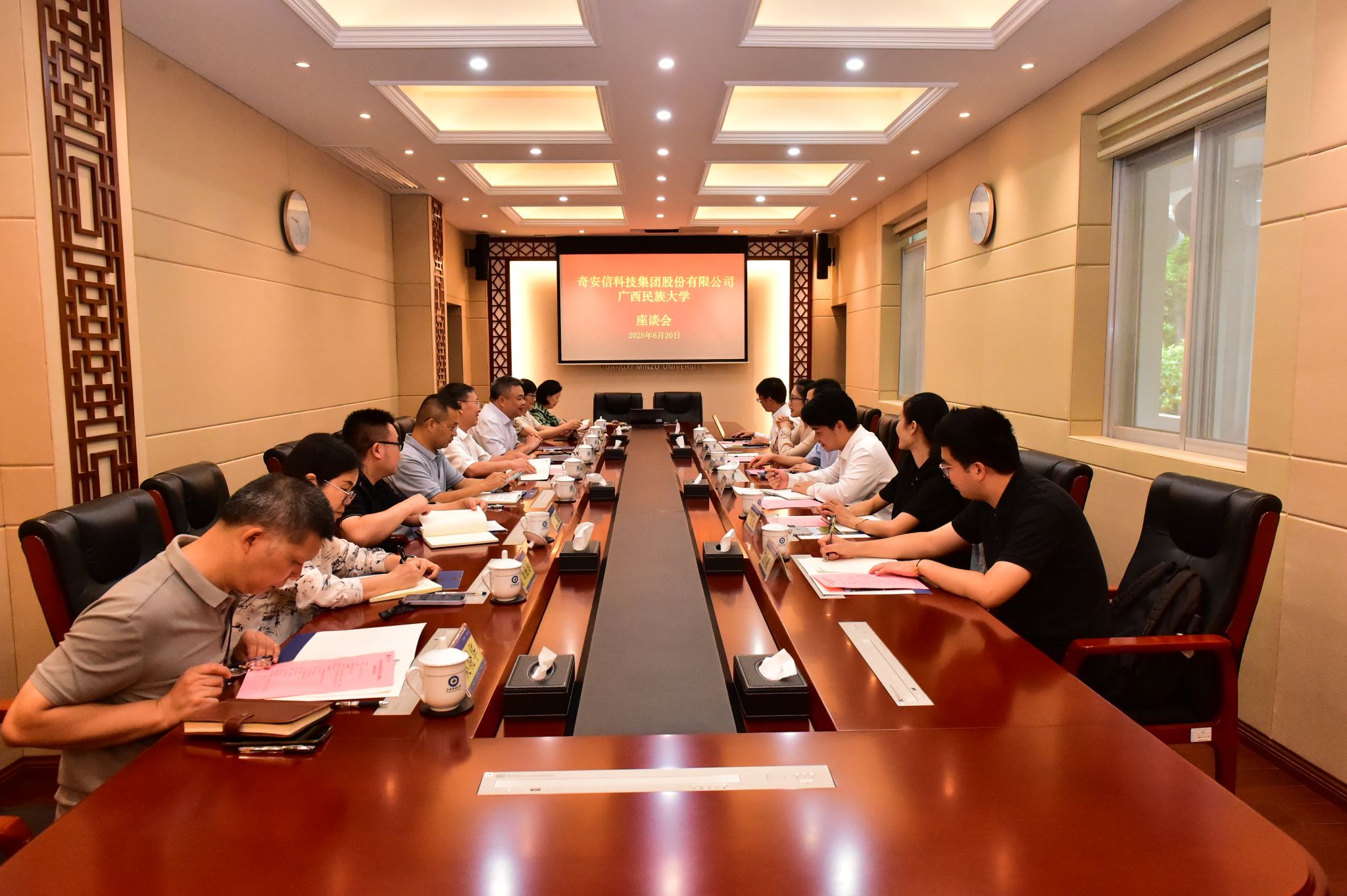 【大學生通訊社報道】6月20日上午,奇安信科技集團股份有限公司調研組到廣西民族大學調研。校黨委書記卞成林,奇安信科技集團廣西分區總經理向凌華等出席座談會。校黨委副書記陳銘彬主持會議。