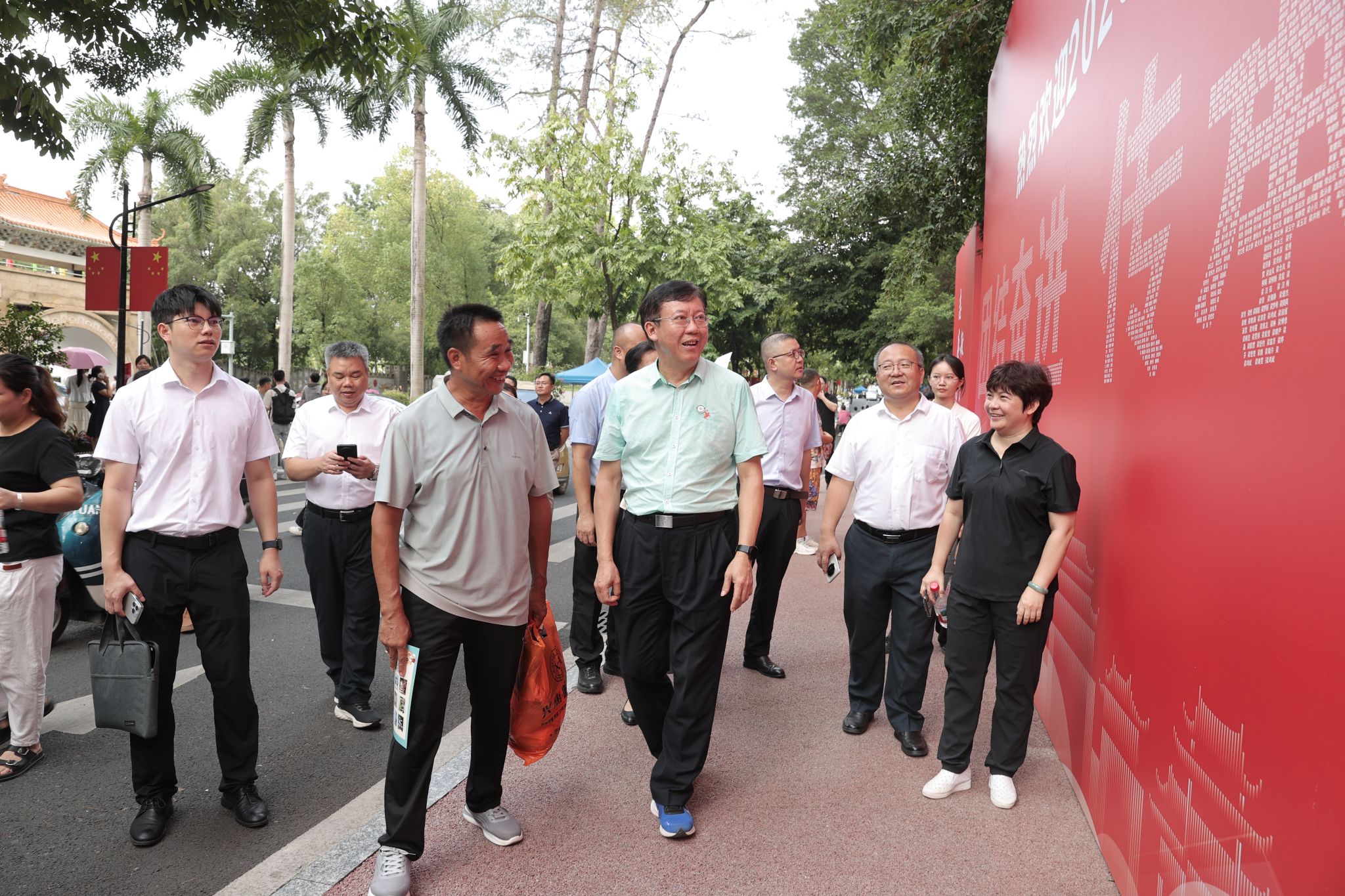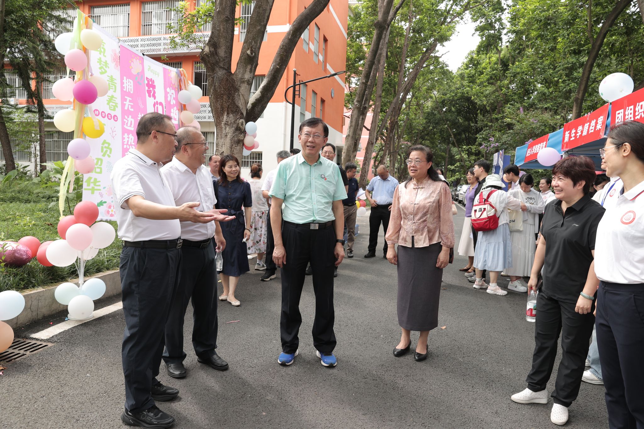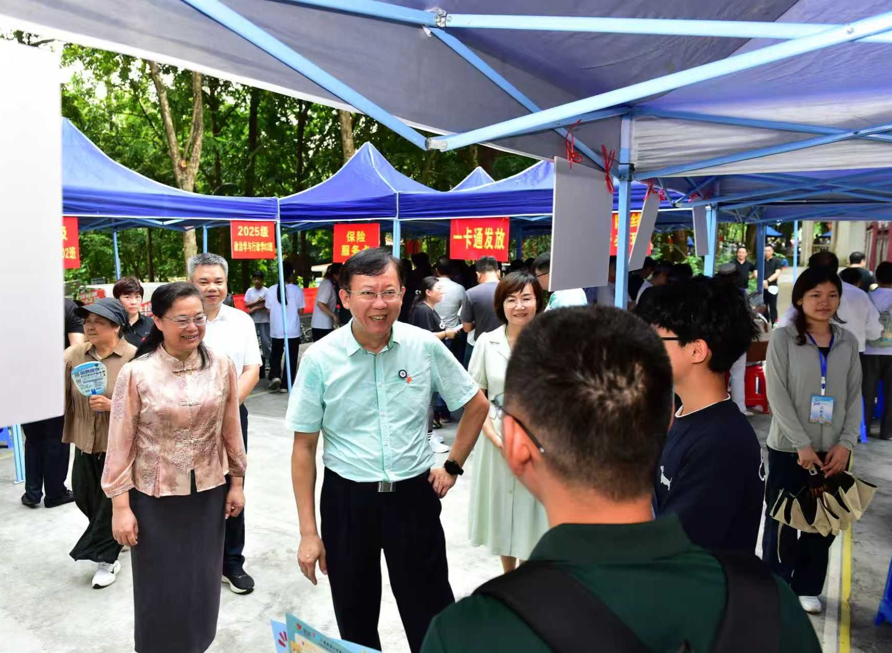 校黨委書記唐平秋、校長韋仕珍在迎新現場檢查