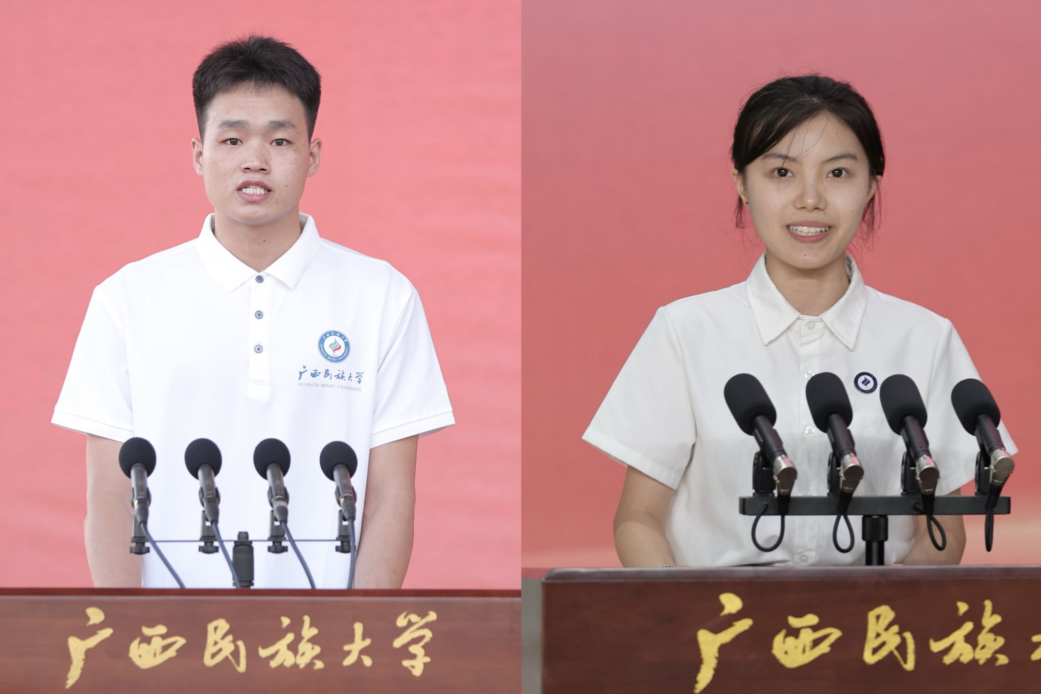 典禮上,新生們佩戴民大校徽徽章,鄭重宣誓:“我是一名光榮的廣西民大人,銘記‘厚德博學,和而不同’的校訓,牢記領袖囑托,勇擔時代重任……為民族團結進步和中華民族偉大復興奮斗終身!”