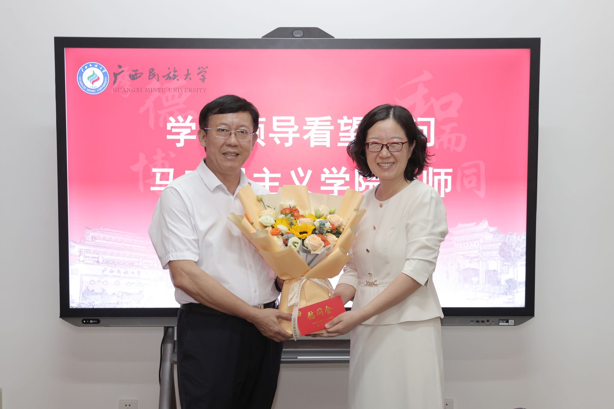 【大學生通訊社報道】為弘揚尊師重教的優良傳統,激勵廣大教師踐行教育家精神,在第41個教師節來臨之際,學校黨委書記唐平秋,黨委副書記、校長韋仕珍,校領導陳銘彬、韋雪芳、鄧國彬、蔡高根、呂俊彪、何立榮、姜明國、高興宇分別走訪慰問辛勤耕耘在育人一線的教職工代表,并向他們送上鮮花與節日祝福。