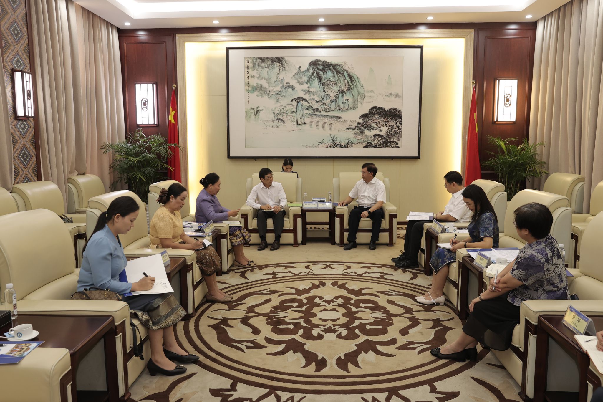 德薩努拉·森登德提到,雙方合作項目以及共建的孔子學院已在老撾順利開展非學歷中文培訓。他誠摯邀請廣西民族大學領導赴老撾共慶孔子學院十五周年華誕。此外,針對先前推進的學校建設方案他提出建議,并積極向老撾教育部匯報以推動達成一致意見。