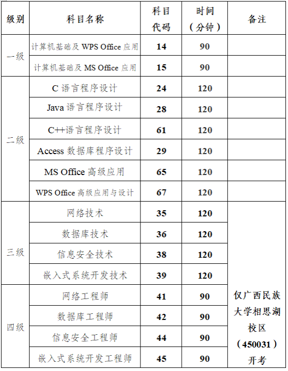 2025年3月全國計算機等級考試將于3月29日-30日舉行,廣西民族大學相思湖校區(450031)與武鳴校區(450111)均接受社會考生報名。為做好本次報名工作,現就有關事項通知如下: