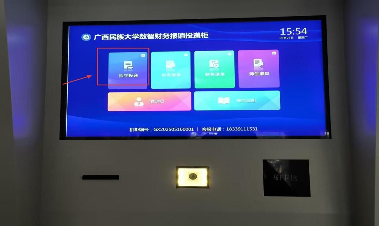 第三步:將報銷單投入指定投遞口后,完成投遞。
